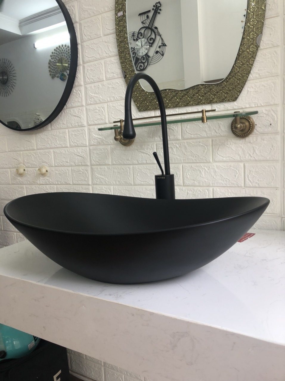 CHẬU THUYỀN ĐEN TUYỀN GRVL0990 Là mẫu thiết bị vệ sinh của GROVES có kiểu dáng đẹp với thiết kế hình elip thu hút, men sứ chống bám bẩn, lòng chậu sâu và rộng, bên