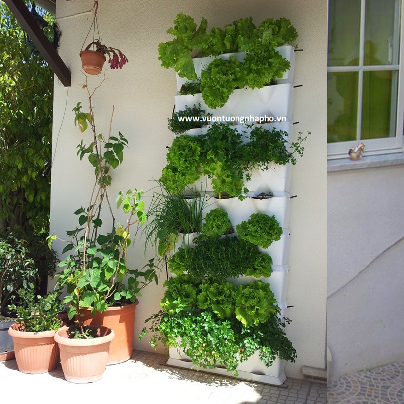 Tự Trồng Rau Nhà Phố (dạng đứng Vertical) Chậu Module Nhập Khẩu Châu Âu tự động tưới nhỏ giọt