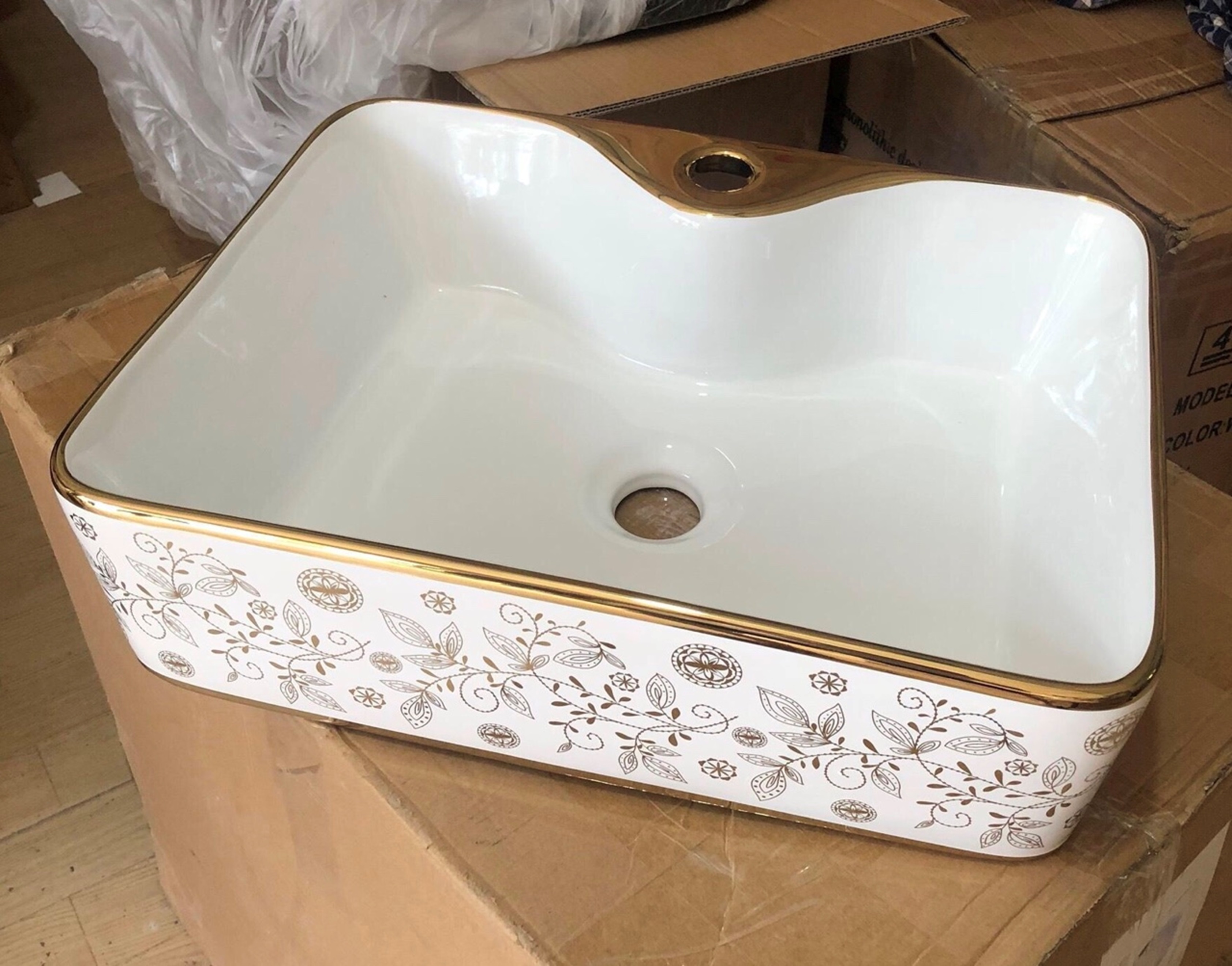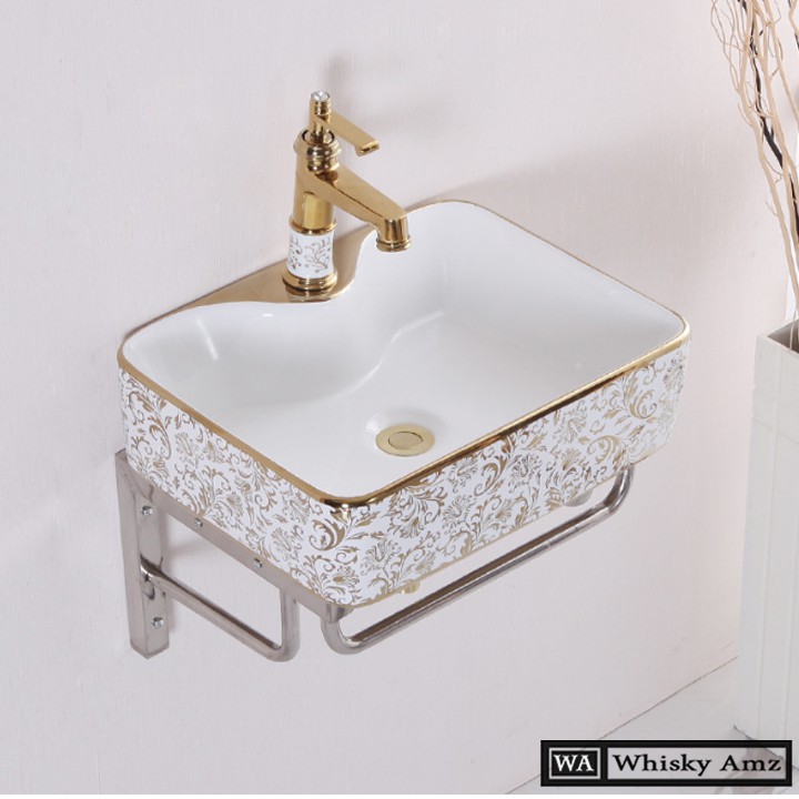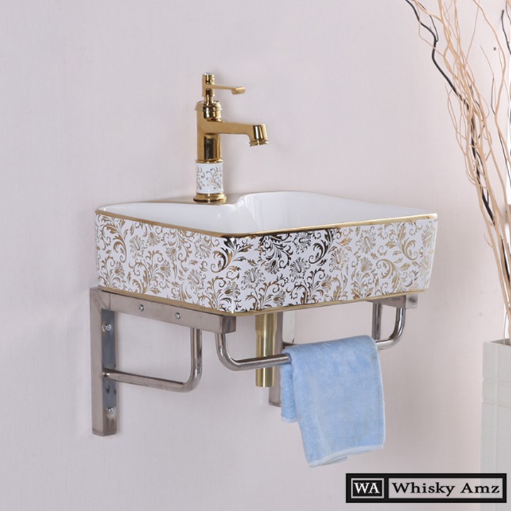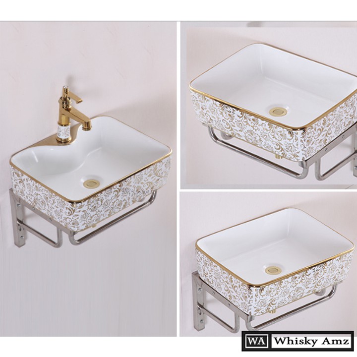 ✨CHẬU RỬA MẶT, LAVABO TRẮNG HỌA TIẾT VÀNG VIỀN VÀNG NHẬP KHẨU CHÍNH HÃNG GROVES CAO CẤP 8170HB