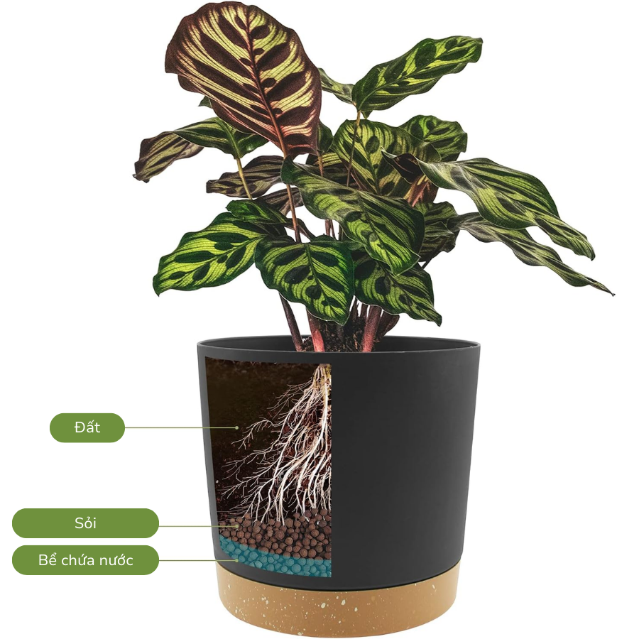 Chậu trồng cây tự tưới nước: Có 3 lỗ thoát nước để tưới nước và đơn giản hóa việc chăm sóc cây, giúp bạn dễ dàng tưới nước cho cây và tránh tắc nghẽn, thiết