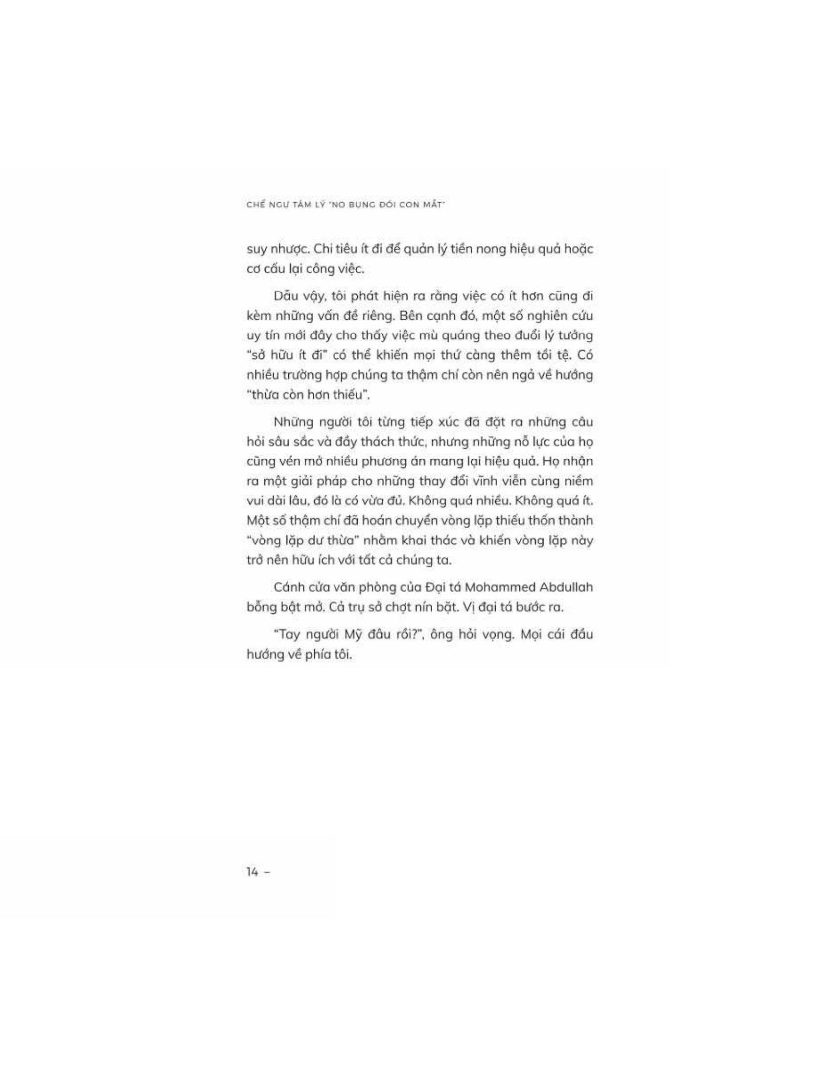 Chế ngự tâm lý “no bụng đói con mắt" của Michael Easter đưa người đọc vào một hành trình kích thích tư duy để tìm hiểu sự phức tạp của tâm trí con người và lý do đằng sau những ham muốn vô độ của chúng ta. Easter khám phá khái niệm về tư duy khan hiếm, "vòng lặp thiếu thốn" - một chu kỳ liên tục khiến chúng ta mong muốn sở hữu nhiều hơn trong các khía cạnh khác nhau của cuộc sống, từ thực phẩm và của cải vật chất đến thông tin cũng như sức ảnh hưởng.