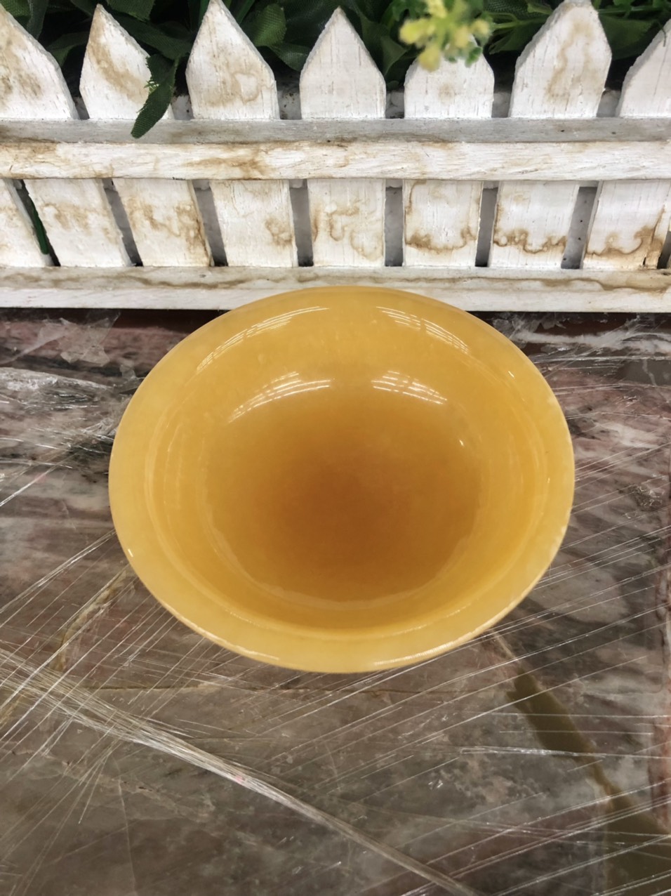 Chất liệu: Đá ngọc hoàng long Kích thước: Đường kính 10,5cm; Cao 4cm; Sâu 2,7cm Khối lượng: 260g