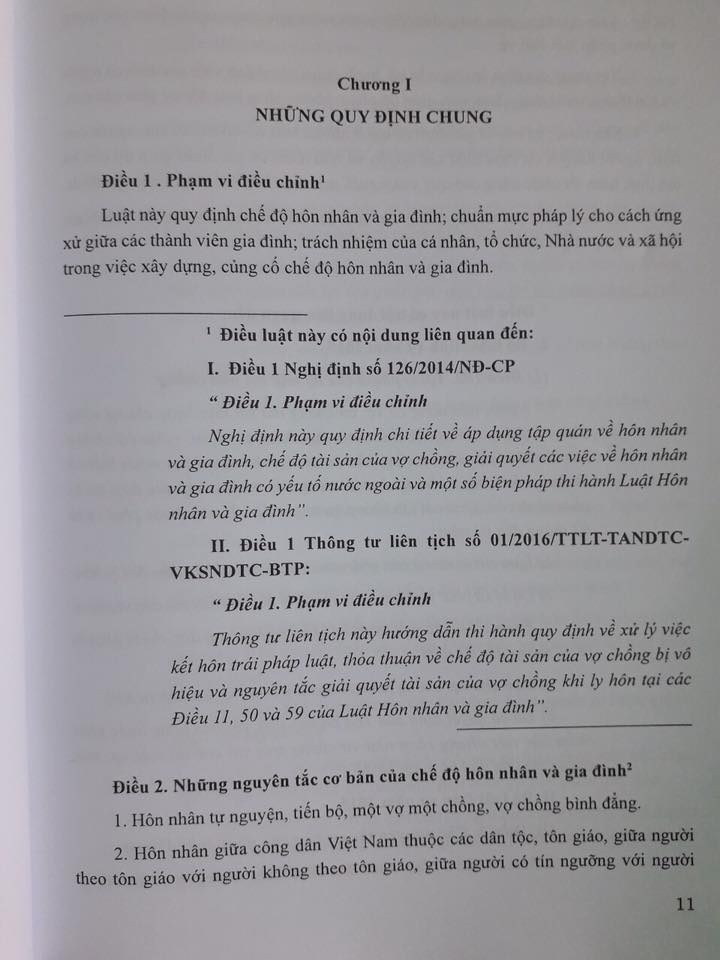Mục lục: Chương 1: Những quy định chung Chương 2: Kết hôn Chương 3: Quan hệ giữa và chồng Chương 7: Cấp dưỡng Chương 8: Quan hệ hôn nhân và gia đinh có yếu tố