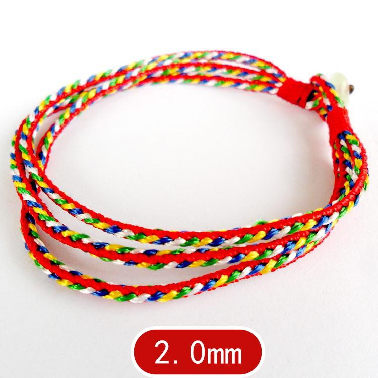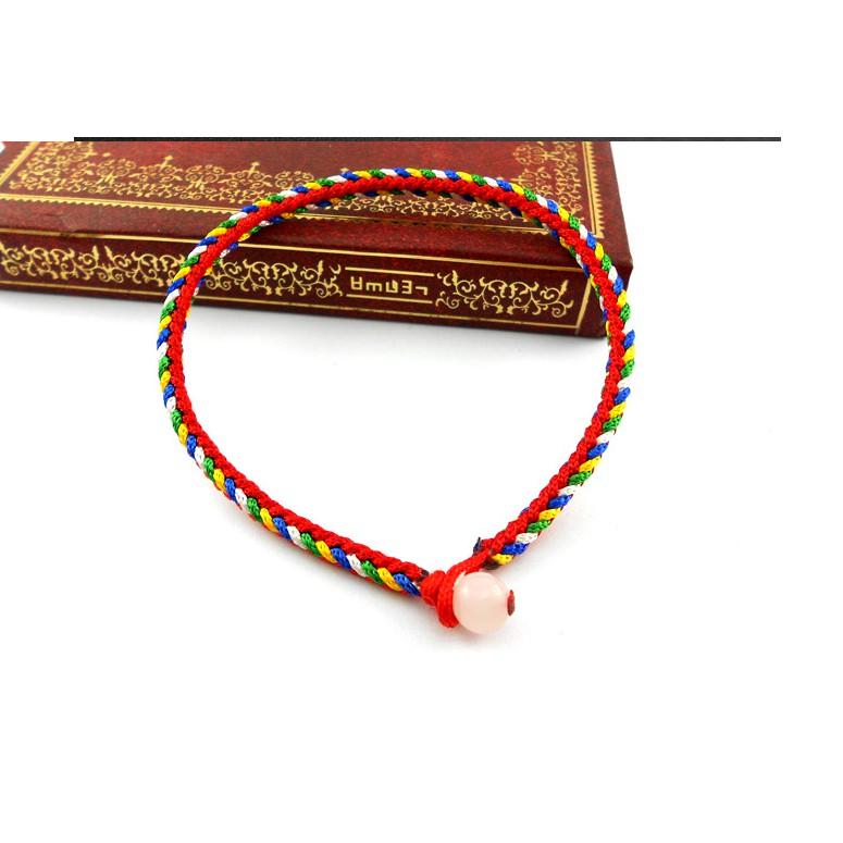 Trong Kinh Điển nhà Phật có nói Dây Ngũ Sắc cũng là đại biểu cho Kim Cương Giới của Ngũ Phật, nếu như đeo dây Ngũ Sắc, tâm quán tưởng Tây Phương A Dì Đà Phật (Màu Đỏ), Nam Phương Bảo Sinh Như Lại Phật (Màu Vàng), Bắc Phương Bất Không Thành Tựu Phật (Màu Xanh Lá), Đông Phương A Súc Bệ Phật (Màu Xanh Da Trời), Chính Giữa là Tỳ Lô Giá Na Như Lai còn được gọi là Đại Nhật Như Lai Phật (Màu Trắng)! Năm phương Đại Phật đều chiếu Phật Quang ánh sáng vàng chói của giải thoát, tức là có thể đắc được Ngũ Phương Kim Cương Đại Phật bảo hộ thân mình. Chỉ ngũ sắc có tác dụng trừ tà ma, đem lại cát tường cho mọi người. Vòng đeo tay kết chỉ Ngũ Sắc được gia trì Ngũ Phật Tâm Chú, được 5 Đức Phật gia hộ, nên khi mang dây Ngũ Sắc thì nên thường Tâm Niệm hình ảnh 5 vị Phật như kể trên mang lại bình an, may mắn, thành đạt và hạnh phúc cho tất cả những ai sở hữu nó. Nếu thường trì chú thêm vào cho dây ngũ sắc thì công hiệu càng lúc càng mạnh.