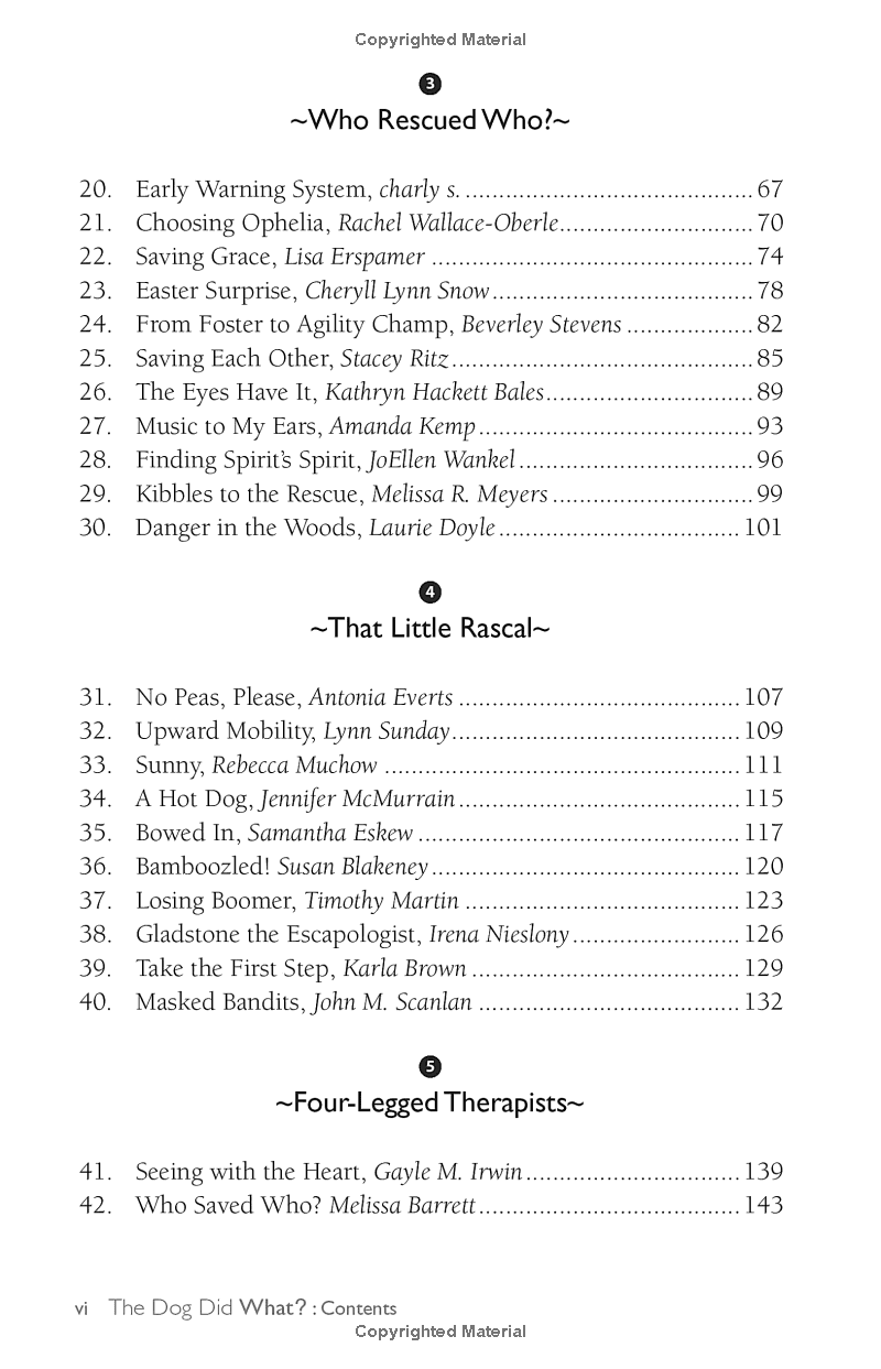 What has that dog done now? You’ll recognize your own dog in this entertaining collection of stories about our canine companions, with chapters about dogs that save lives, dogs that help people heal, dogs with uncanny intuition, goofy dogs, and even bad, bad dogs!