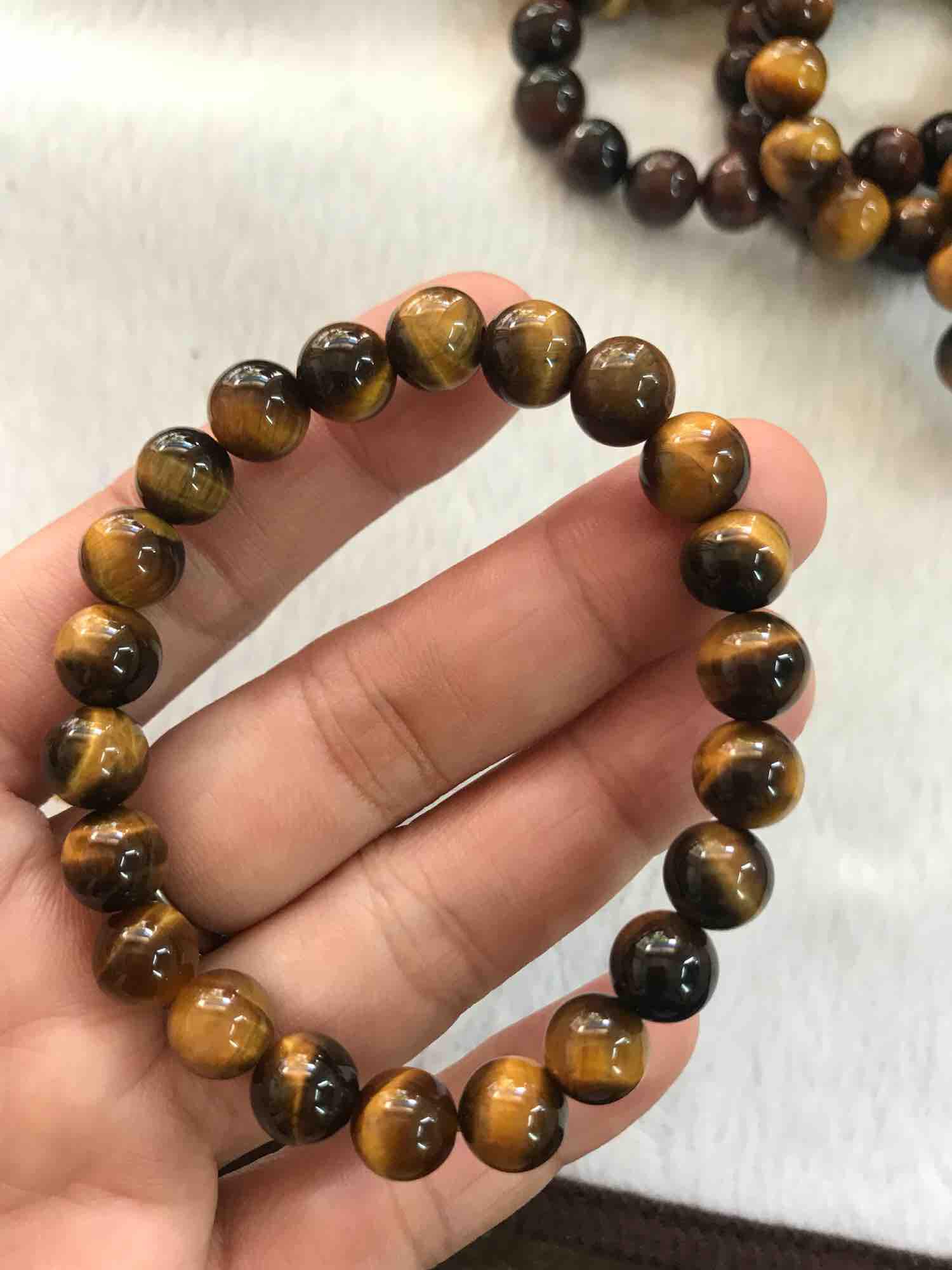✨CHIẾC VÒNG TAY MAY MẮN NỮ MỆNH THỔ KIM 8MM ĐÁ MẮT HỔ VÀNG NÂU ĐẬM