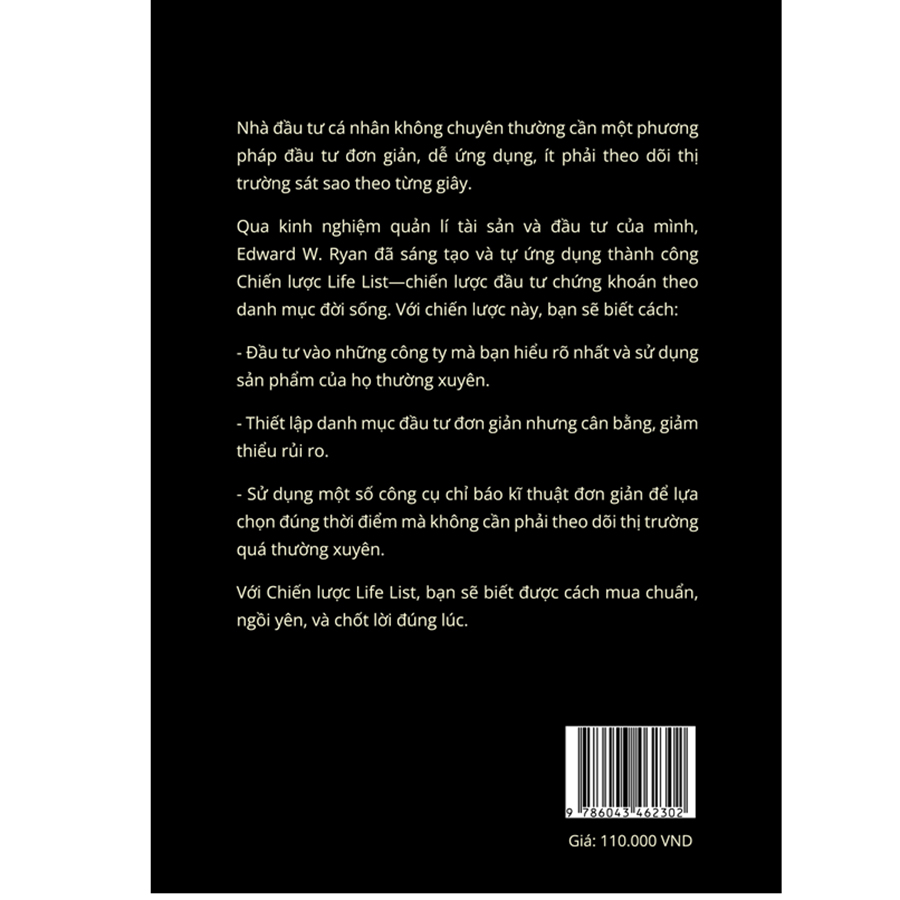 Qua kinh nghiệm quản lí tài sản và đầu tư của mình, Edward W. Ryan đã sáng tạo và tự ứng dụng thành công Chiến lược Life List—chiến lược đầu tư chứng khoán theo danh mục đời sống. Với chiến lược này, bạn sẽ biết cách: