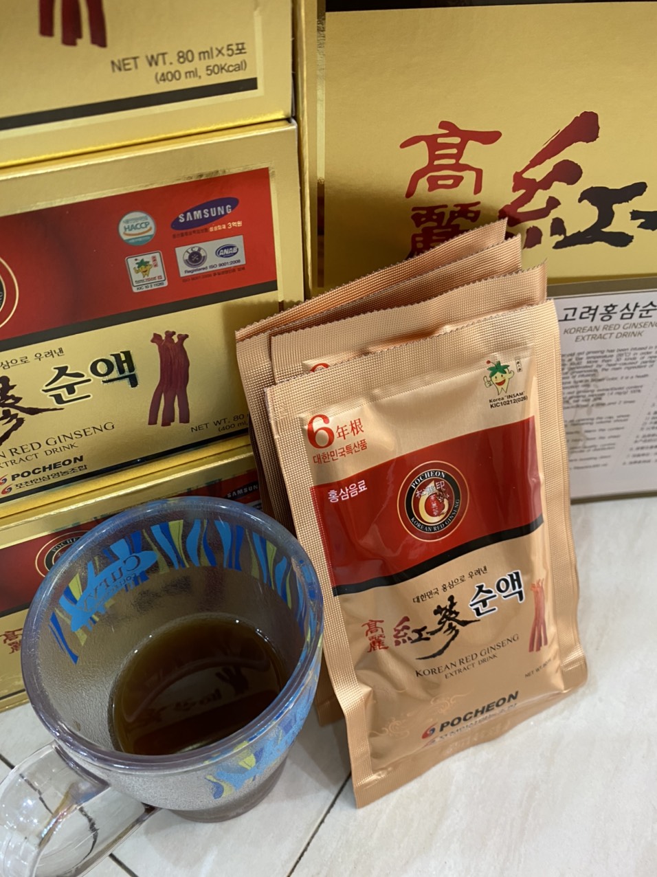 Chỉ với 1 gói nhỏ 80ml cung cấp đầy đủ dưỡng chất cần thiết cho cơ thể của bạn và gia đình cho một ngày hoạt động, Thiết kế sản phẩm trang nhã, bắt mắt và sang trọng. Chiết xuất hồng sâm phù hợp để dùng làm quà tặng người thân, bạn bè và đồng nghiệp trong những dịp tết đến, xuân về.