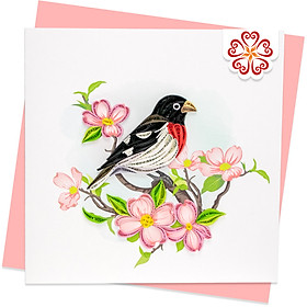 VỀ SẢN PHẨM BẠN ĐANG QUAN TÂM Mẫu thiết kế: Chim tước mỏ lớn ngực đỏ và hoa thù du hồng - Thiệp giấy xoắn 15 x 15 cm Chủ đề: Các loài động vật
