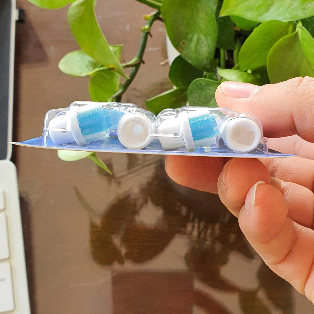 Mua tại TiktokBộ 4 đầu bàn chải đánh răng điện- Đánh tan mảng bám- cho máy Braun Oral-B Vấn đề viêm lợi, viêm nha chu hầu như ai cũng mắc phải, không chỉ người lớn mà trẻ nhỏ càng hay bị. Nhất là răng trong cùng bàn chải thông thường không luồn vào được, có luồn tới thì cũng không làm cách nào, không có không gian mà ngọ nguậy đầu bàn chải vào làm sạch. Do đó thức ăn, cao răng bám vào các kẽ răng trong cùng gây viêm, hôi miệng rất khó chịu. Giải pháp là dùng bàn chải đánh răng điện, việc rất đơn giản là cho bàn chải vào là máy tự động xoay với tốc độ hàng nghìn vòng/ phút gấp hàng trăm lần ta đưa đi đưa lại với bàn chải thông thường. Mô tả: