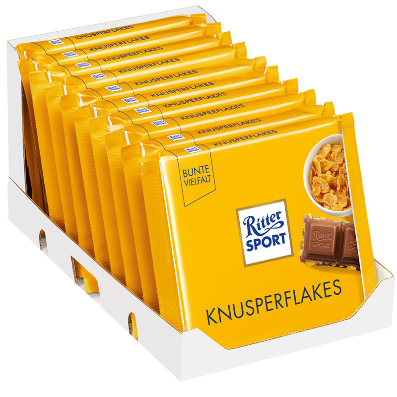 - Chocolate Ritter Sport Knusperflakes nhân bỏng ngô 100g sự hòa quyện giữa vị ngọt ngào của sô cô la, vị béo của bột sữa cùng vị ngọt thơm của bỏng ngô, mang đến cho bạn một hương vị sô cô la độc đáo, hấp dẫn.