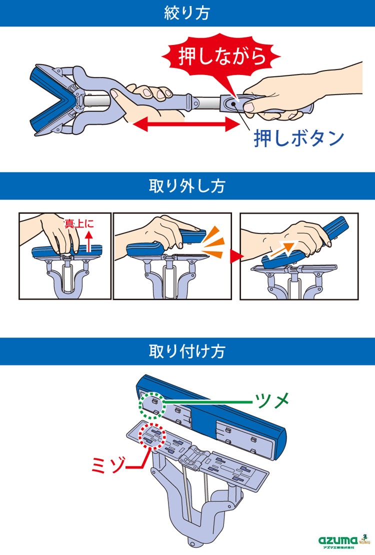 Chổi lau nhà thông minh Azuma Nhật Bản Chất liệu: Đầu lau bằng mút bọt biển Polypropylene với khả năng thấm hút nhanh, bám dính tốt, thân bằng hợp kim nhôm, bọc nhựa ABS, an
