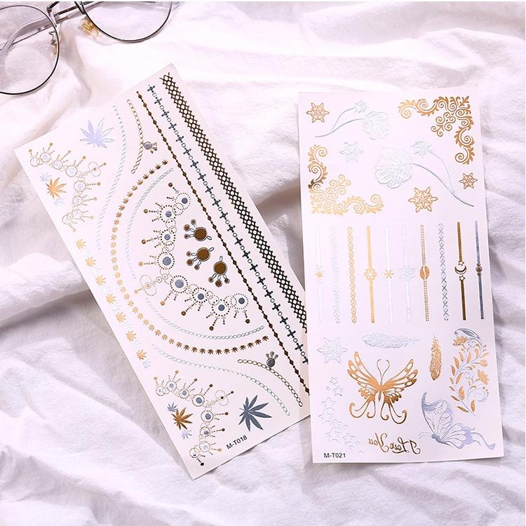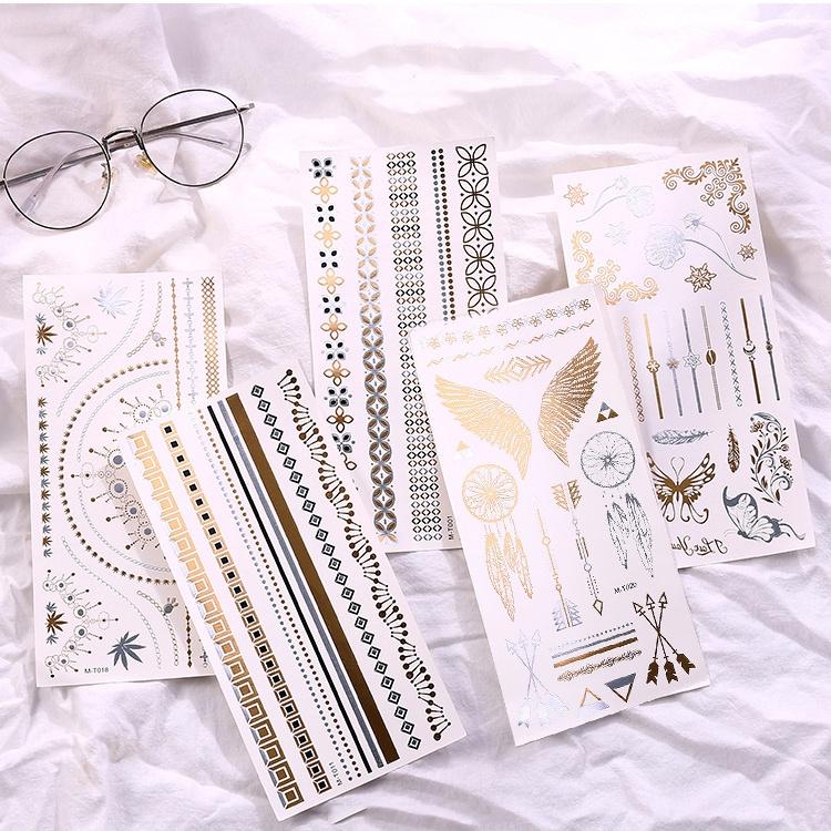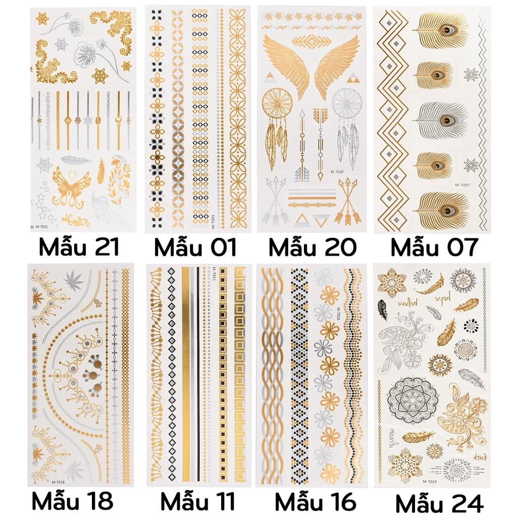 ✨(Chọn mẫu) Hình xăm dán ánh kim, miếng dán xăm nhũ tạm thời henna tatoo vòng tay, băng tay Legaxi