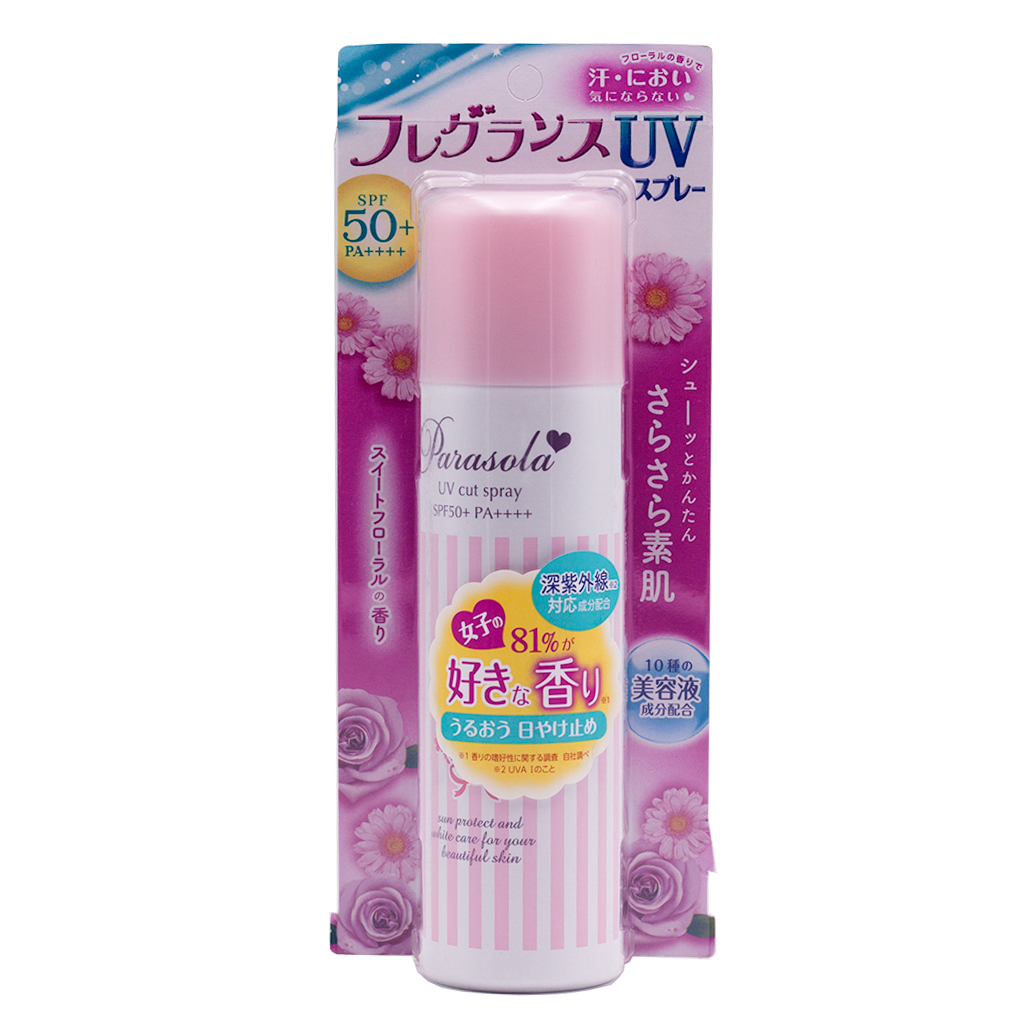 Mua tại TiktokXịt chống nắng nước hoa Parasola Essence in UV Cut Spray SPF50+ PA+++ bảo vệ da và tóc khỏi tia UV mà không để lại cảm giác nhờn dính. Hương nước hoa dịu nhẹ tạo cảm giác thoải mái. Ưu điểm vượt trội: