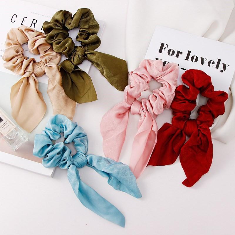 Mua tại TiktokChun buộc tóc nơ vải satin Hàn Quốc xinh xắn dễ thương tiểu thư - Phụ kiện tóc, dây cột tóc