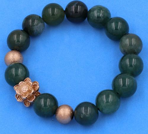 ✨Chuỗi tay Cẩm Thạch Xanh Đậm 12 ly mix hoa sen vàng hồng VCTXDHSHBH12 - Vòng tay hoa sen inox 304, không rỉ sét
