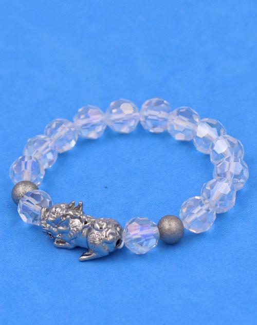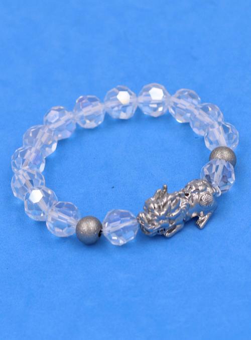 ✨Chuỗi tay Pha Lê Trắng Cắt Giác 10 ly Mix Tỳ Hưu Inox 2 Bi VFLGTRTHEHB10 - Chuỗi tay phong thủy thời trang