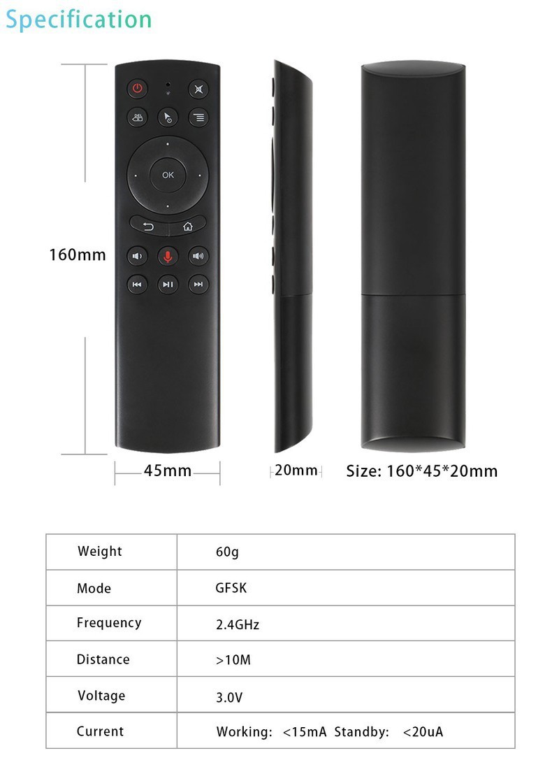 - Dùng tốt trên các 6.0 trở lên, đặc biệt là với HĐH AndroidTV Chuột bay g20s có tem gyroscope