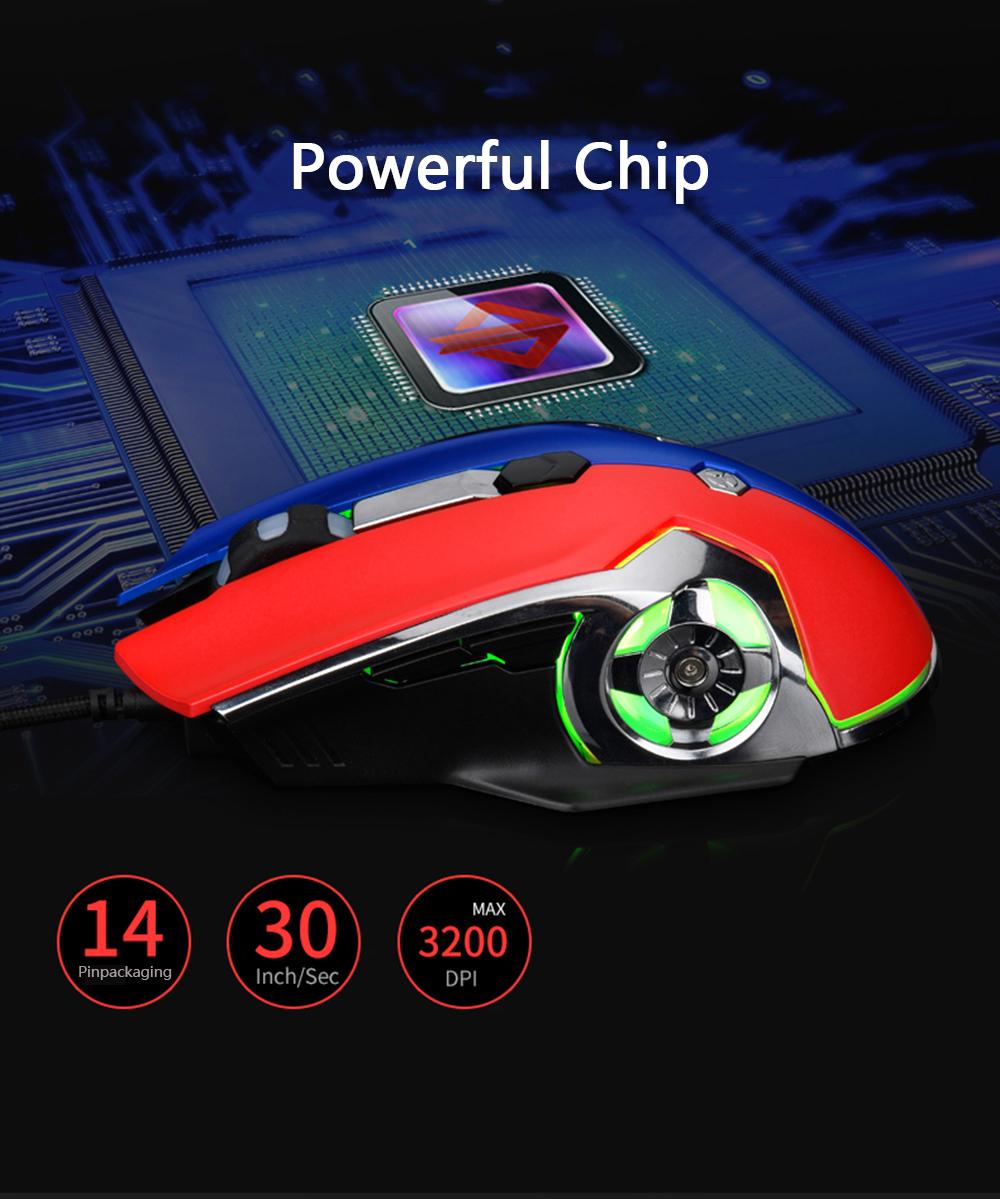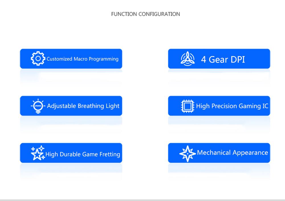 Features: 6 kinds of RGB light effects, greatly enhances gaming atmosphere, bringing immersive gaming experience. 6-key macro programming design, supports recording and writing macro definition commands. 6 adjustable DPI, easy to switch, accurate positioning, smooth