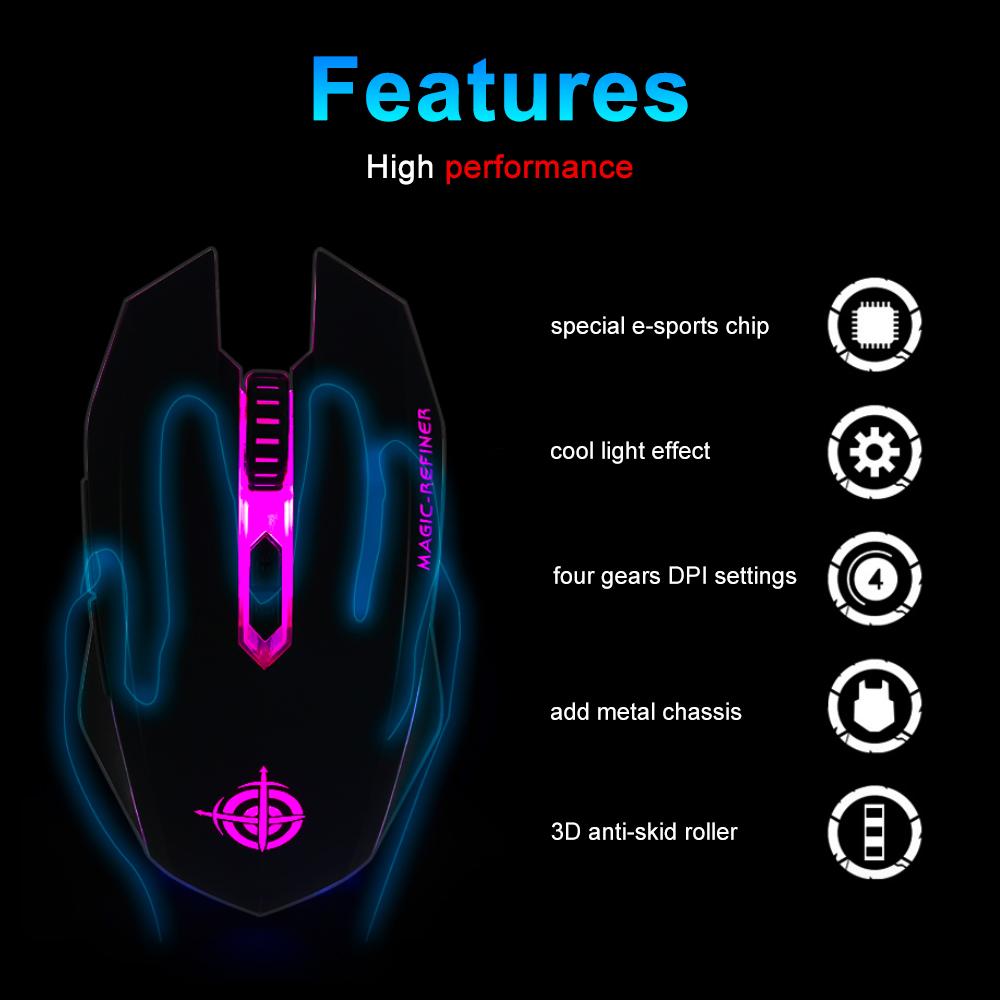Description: Smooth, precise andwireless optical 7-button mouse with receiver and colorful backlight effect for game enthusiasts. Features: Features: Optical laser technology for precise control, built-in rechargeable lithium battery,TYPE-C interface quickly charge, There is no need