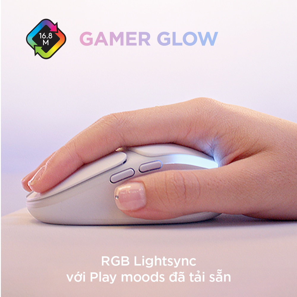CÁC ĐẶC ĐIỂM NỔI BẬT Công nghệ Chơi game Tiên tiến trong thiết kế nhỏ gọn dành cho những đôi tay nhỏ Chuột chơi game Logitech G705 từ Bộ sưu tập Aurora là con chuột không dây nhỏ gọn, được thiết kế để đưa sức mạnh của cuộc chơi vào trong tay bạn với đường viền uốn lượn vừa vặn, ánh sáng RGB êm dịu và công nghệ cấp độ chơi game. Ánh sáng RGB LIGHTSYNC êm dịu theo vùng Chuột chơi game RGB có LIGHTSYNC của Logitech đưa trò chơi đến với cuộc sống với bốn kiểu chế độ Play Moods thích ứng, phản ánh trạng thái chơi của bạn trong 16,8 triệu màu sắc RGB có thể lập trình. Hãy khơi nguồn sáng tạo, thể hiện phong cách của bạn và tạo hiệu ứng hoạt hình tùy chỉnh của riêng bạn bằng phần mềm G HUB miễn phí của Logitech. Công nghệ LIGHTSPEED không dây và kết nối Bluetooth Chuột Chơi game Không dây của Logitech cho phép bạn thoát khỏi hiện tại từ bất cứ đâu, với khả năng sạc lại qua USB-C, thời lượng pin 40 giờ (trong khi chơi với ánh sáng toàn phần), công nghệ LIGHTSPEED không dây, kết nối Bluetooth. Chơi trên hầu như mọi nền tảng và hệ điều hành, bao gồm Windows, macOS, Chrome OS, Android, iOS và iPadOS. 6 nút: Các nút bên chuyển DPI và có thể lập trình Chuột Logitech G cho phép những cuộc chơi bắt đầu với cảm biến cấp độ chơi game và độ linh hoạt khi chơi không dây hoặc có dây. Chỉ nặng 85 gram, chuột chơi game có trọng lượng nhẹ G705 được thiết kế để đem lại sự thoải mái, chính xác và tiện dụng.