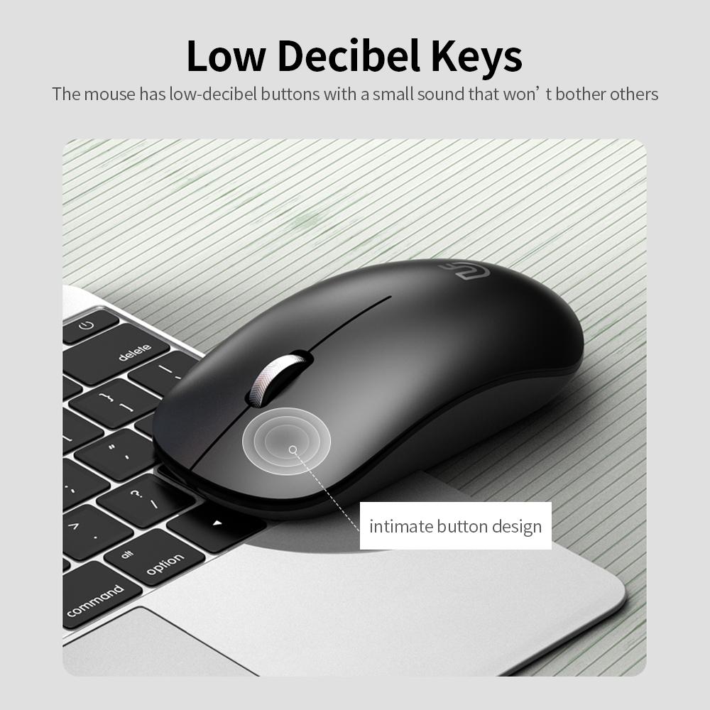 Features: 2.4G Wireless Transmission Technology 2.4GHZ wireless transmission, 8-10meters distance, effectively avoid the interference of BT and WIFI, and ensure the stability of wireless transmission. Low Decibel Keys The mouse has low-decibel buttons with a
