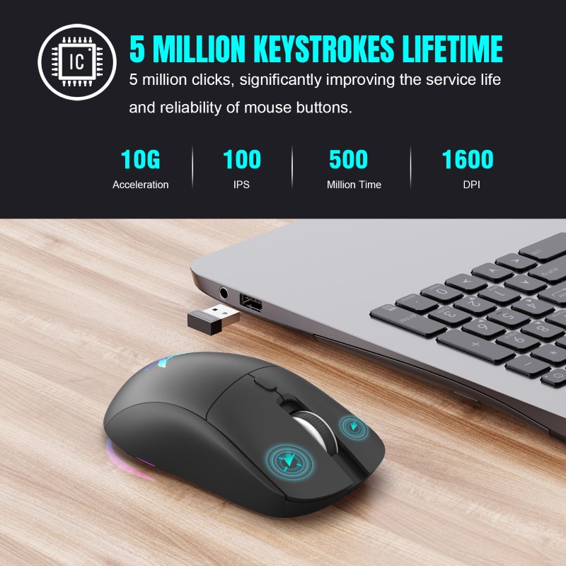 . Chuột Led Không Dây Pin sạc T25 Gaming Cổng sạc TypeC chống mỏi cổ tay cho máy tính laptop