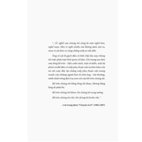 “Cái được nhất, cà cũng mang lại cho anh (Trần Văn Thủy) nhiều trắc trở nhấ, là anh thẳng quá. Sự thẳng thắn là điếu đáng trọng nhất của nhân cách người nghệ sĩ. Bao giờ anh cũng đi thẳng vào tâm điểm rất nóng của thời cuộc, vơi sự nhạy cảm và trách nhiệm công dân rất đáng trân trọng.”
