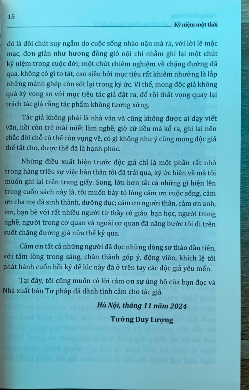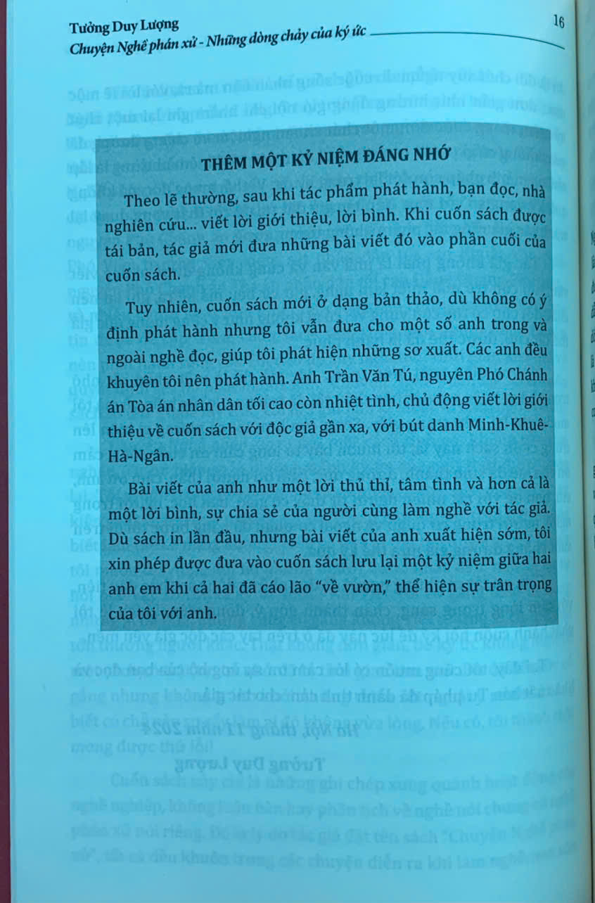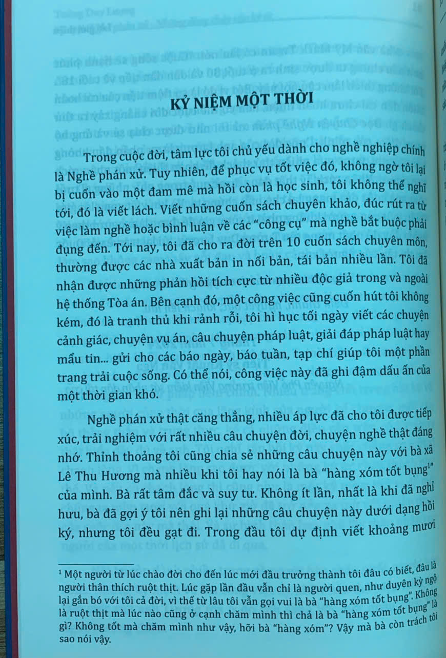 Cuốn sách phản ánh góc nhìn của tác giả- người đã sống ở nhiều nơi, kinh qua rất nhiều vị trí công tác và luôn "cố gắng không viết những gì có thể làm tổn thương người khác", nhưng có thể khó tránh khỏi thiếu sót. Nhà Xuất bản Tư pháp và tác giả mong nhận được ý kiến góp ý của bạn đọc để cuốn sách hoàn thiện hơn trong lần xuất bản sau.