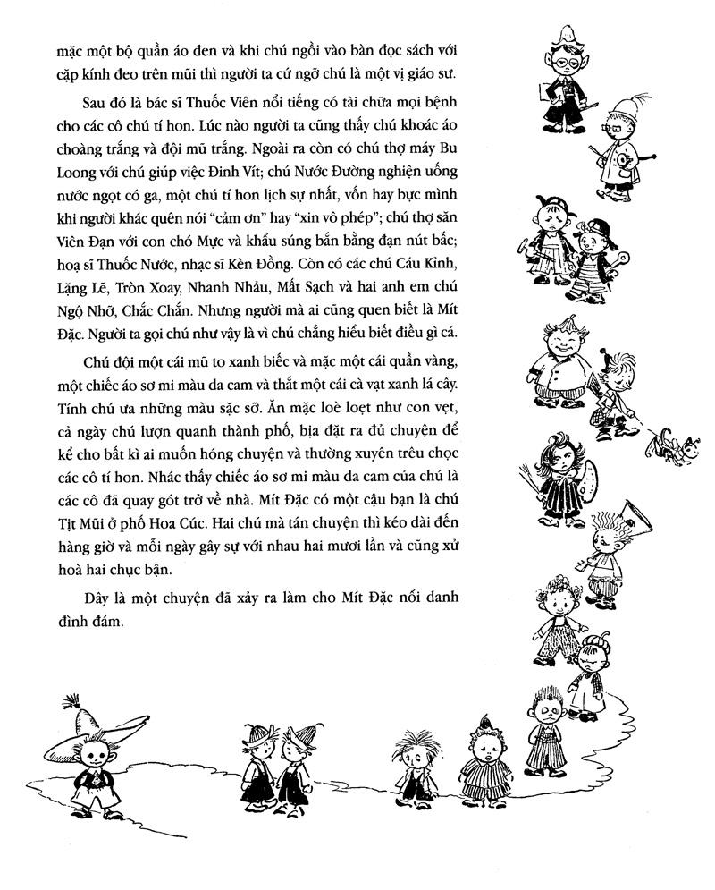 Các bạn đang cầm trên tay cuốn truyện vô cùng hài hước, hấp dẫn và giàu trí tưởng tượng về các chú tí hon ở thành phố Hoa. Đó là Mít Đặc ham hiểu biết, nhưng lại lười suy nghĩ và thiếu kiên trì nên chẳng học được gì. Là Biết Tuốt thông minh, hiểu nhiều biết rộng, chín chắn. Và các chú Tròn Xoay, Ngộ Nhỡ, Mất Sạch, Cáu Kỉnh, nhạc sĩ Kèn Đồng, họa sĩ Thuốc Nước, mỗi người một tính cách, một vẻ đáng yêu riêng.