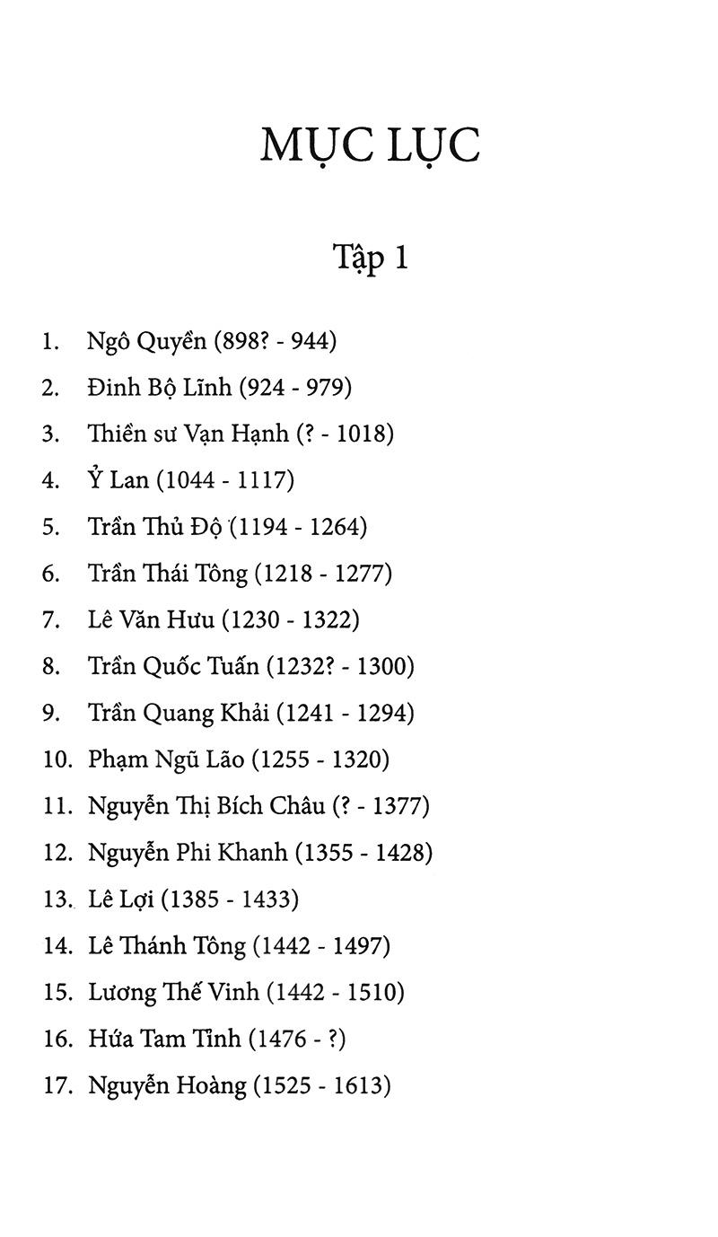 Danh Nhân Quân Sự Việt Nam Sách viết về 17 danh nhân quan sự Việt Nam: 1. Ngô Quyền, 2. Đinh Bộ Lĩnh, 3. Lê Hoàn, 4. Lý Thường Kiệt 5. Trần Quốc Tuấn,