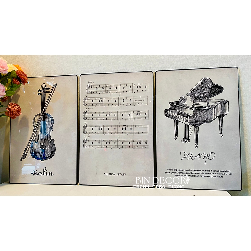 Tranh treo tường âm nhạc 24 - Kích thước của tranh : Kích thước : 25x35cmx3 tấm 30x45cmx3 tấm 40x60cmx3 tấm - Chất liệu : KIM SA - TRÁNG GƯƠNG - CANVAS - Khách hàng
