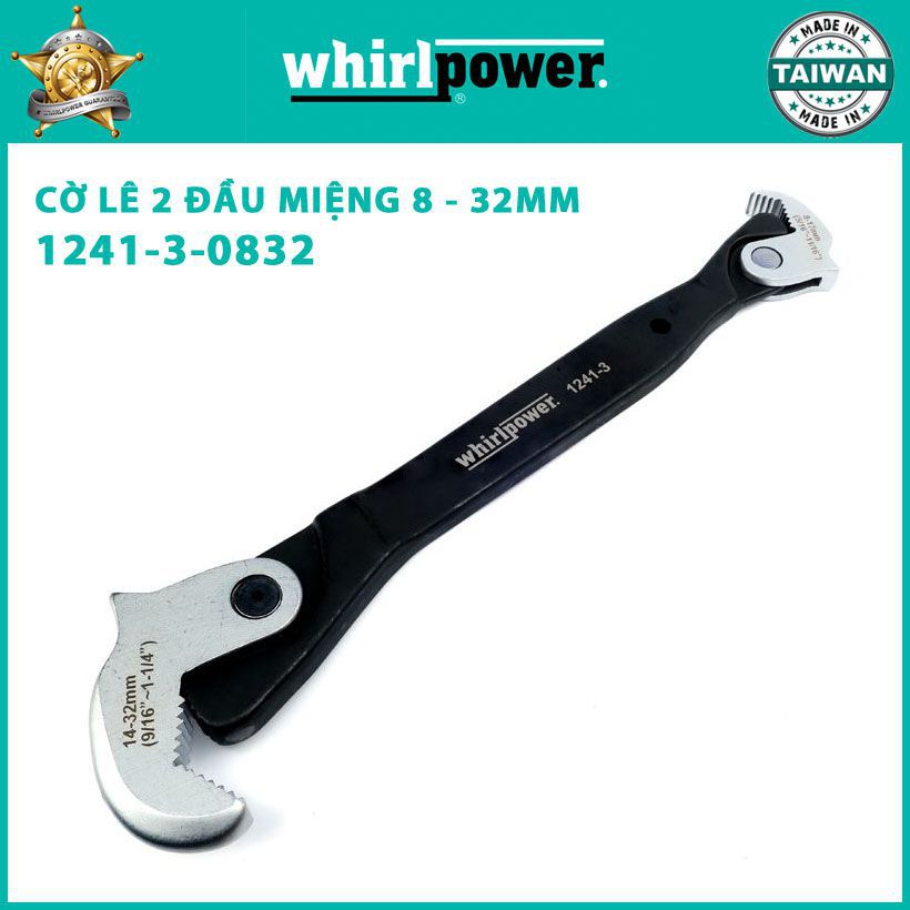 - Cờ lê đa năng 8 - 32mm Whirlpower 1241-3-0832 giúp cho các bạn vặn được những bulong có kích thước hệ Met từ 8 đến 32mm và cả những bulong hệ Inch từ 5/16” đến 1 1/4” .