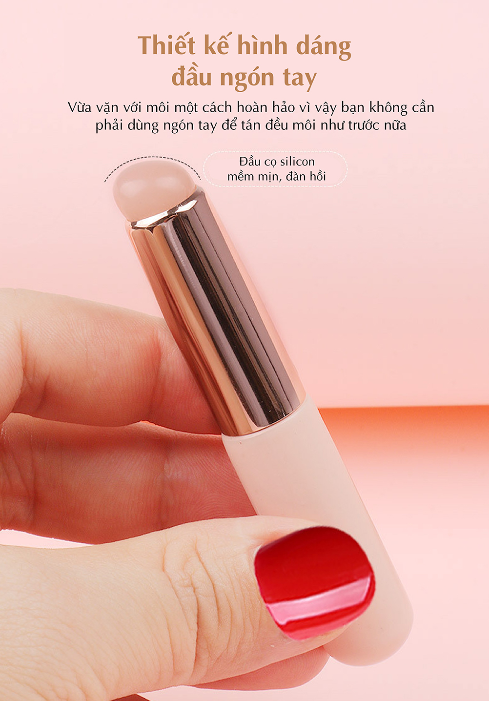 - Thiết kế tinh tế, sang trọng, đa năng và tiện dụng: Giúp bạn trang điểm thoa son môi chính xác không bị lem. Đầu cọ có độ dốc hình dáng của ngón tay giúp thao tác phù hợp, vừa vặn và dễ dàng tiếp xúc với đôi môi của bạn giúp bạn tạo nên lớp trang điểm tự nhiên và xinh đẹp nhất.