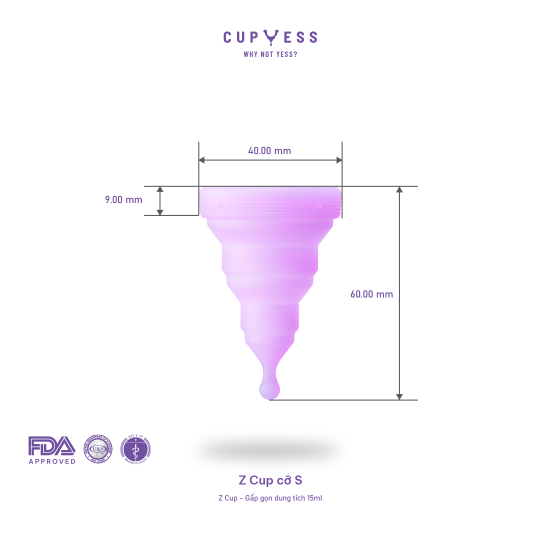 ✨Cốc nguyệt san gấp gọn Z Cup cỡ S (15ml) Cup Yess chính hãng, an toàn, nhỏ gọn, siêu tiện lợi