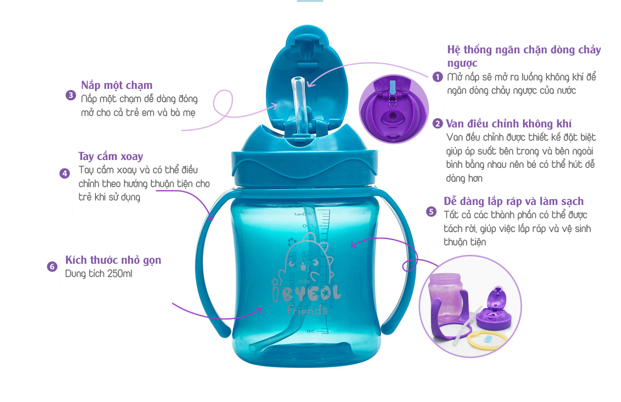 Cốc ống hút I-byeol Friends Flip Color One Touch (Chính hãng Hàn Quốc) Dòng bình sữa/ cốc ống hút I-byeol Friends từ Hàn Quốc với thiết kế đơn giản, tinh tế, dáng cổ rộng đem đến sự thuận tiện và thoải mái cho cả mẹ và bé trong việc sử dụng và vệ sinh. Đặc điểm nổi bật của Cốc ống hút I-byeol Friends: