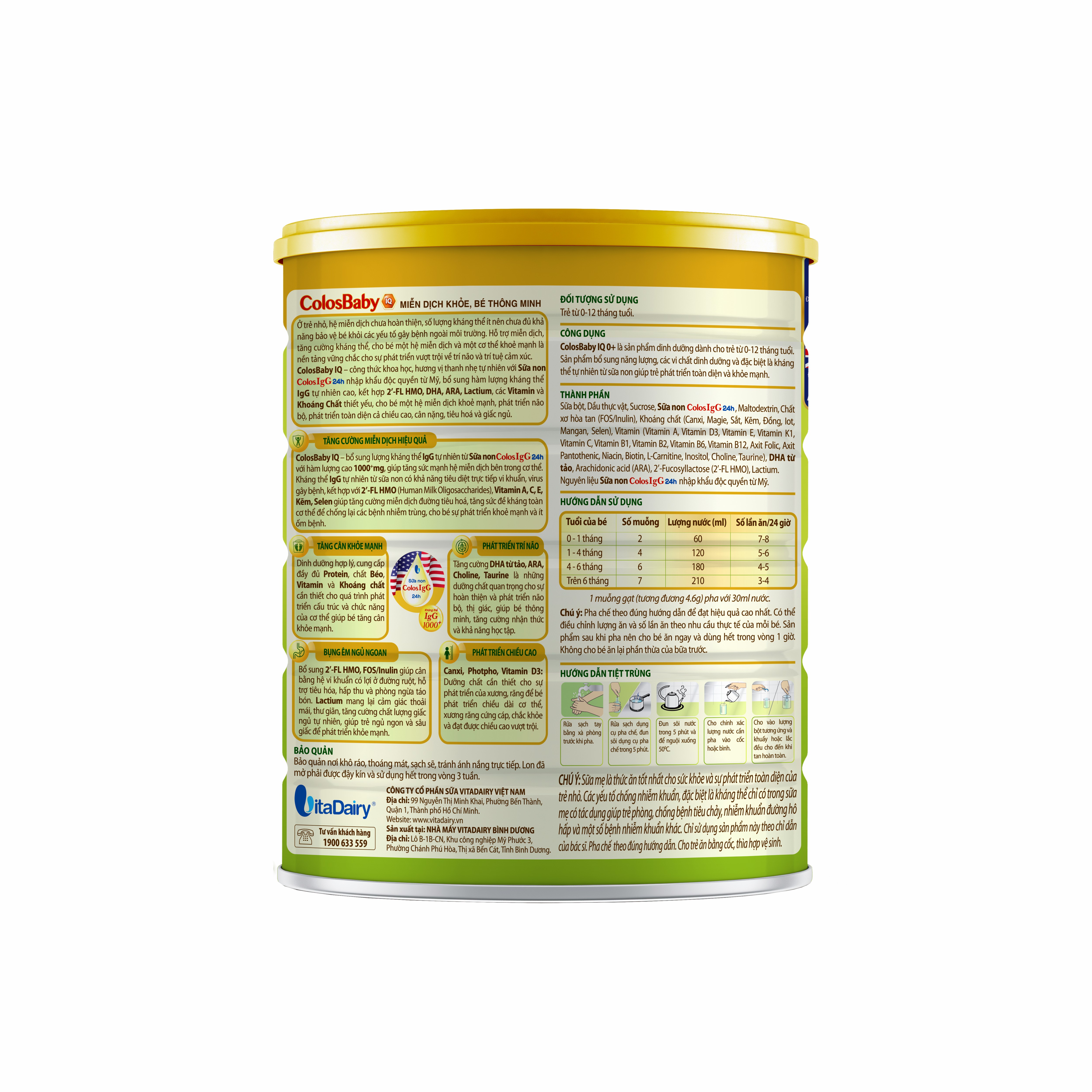 ColosBaby IQ - công thức khoa học, hương vị thanh nhẹ tự nhiên với sữa non ColosIgG 24h nhập khẩu độc quyền từ Mỹ, bổ sung hàm lượng kháng thể IgG tự nhiên cao, kết