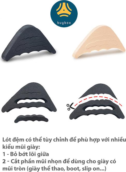 CÔNG DỤNG NỔI BẬT Lót giày nguyên bàn chân đa năng buybox là sự kết hợp giữa lót giày và lót giảm size giày. Lót mũi giày đệm êm ngón chân cũng có công dụng