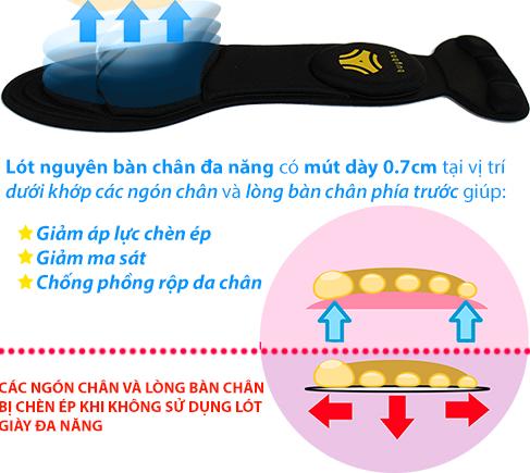 • Quy cách: một combo bao gồm 01 cặp lót nguyên bàn chân đa năng + 01 cặp lót mũi giày đệm êm ngón chân
