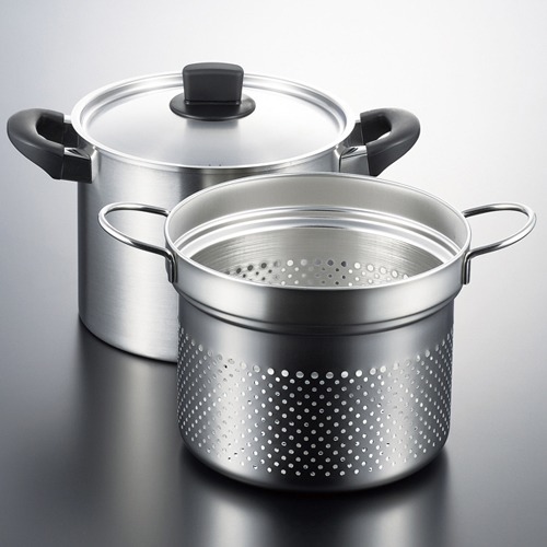 Bộ nồi xửng hấp inox có tay cầm kèm vợt lọc Tsubame -nội địa Nhật Bản - Chất liệu: Thân & nắp bằng inox cao cấp không gỉ, tay cầm & núm cầm bằng nhựa Phenolic