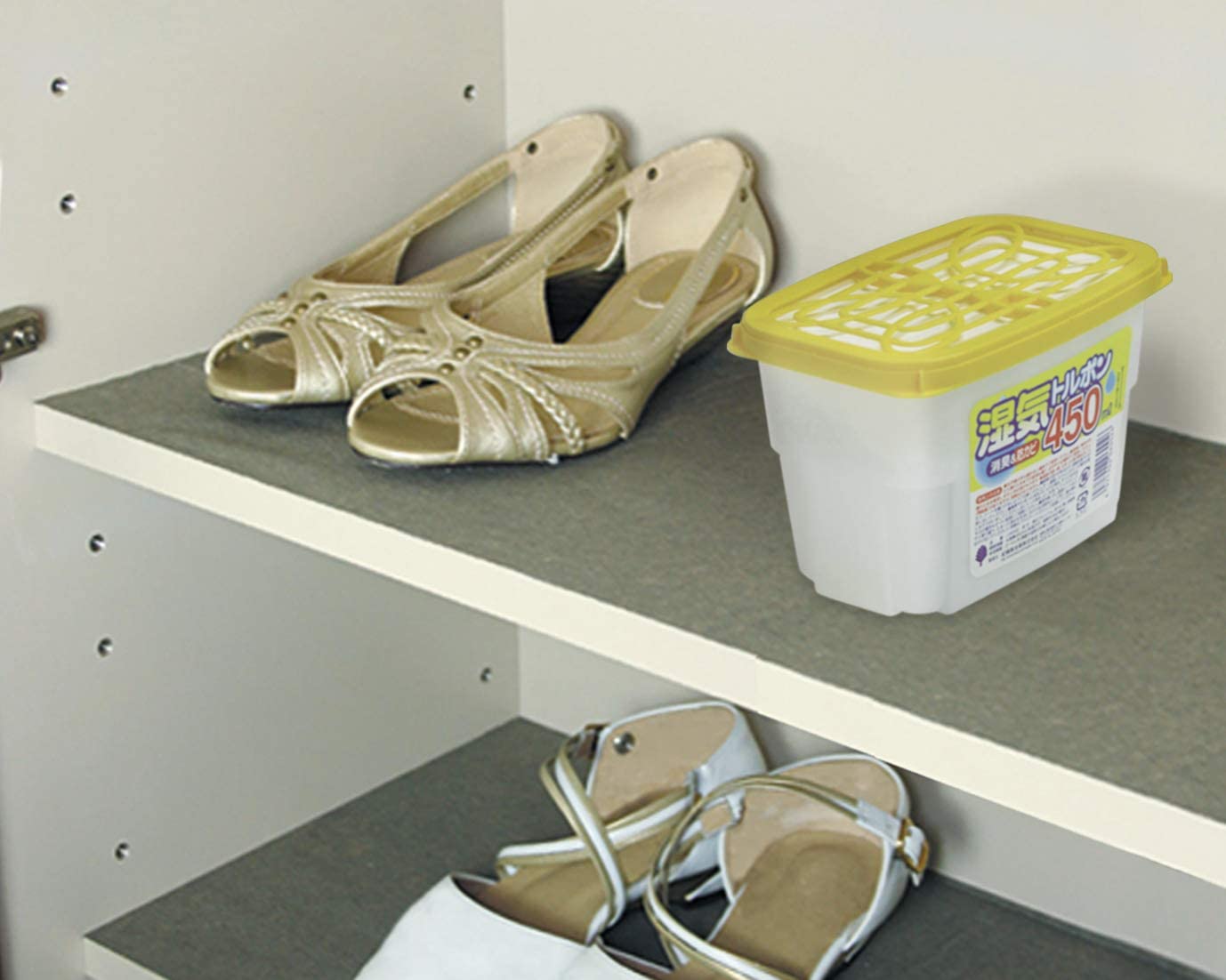 Hộp hút ẩm, khử mùi Nhật Bản 450ml Thành phần: Calcium chloride, chất khử mùi, chất chống mốc... vv Màu sắc: Màu vàng Kích thước: 9.5x3.3x5.6Hcm Dung tích: 450ml Công dụng: * Dùng để hút