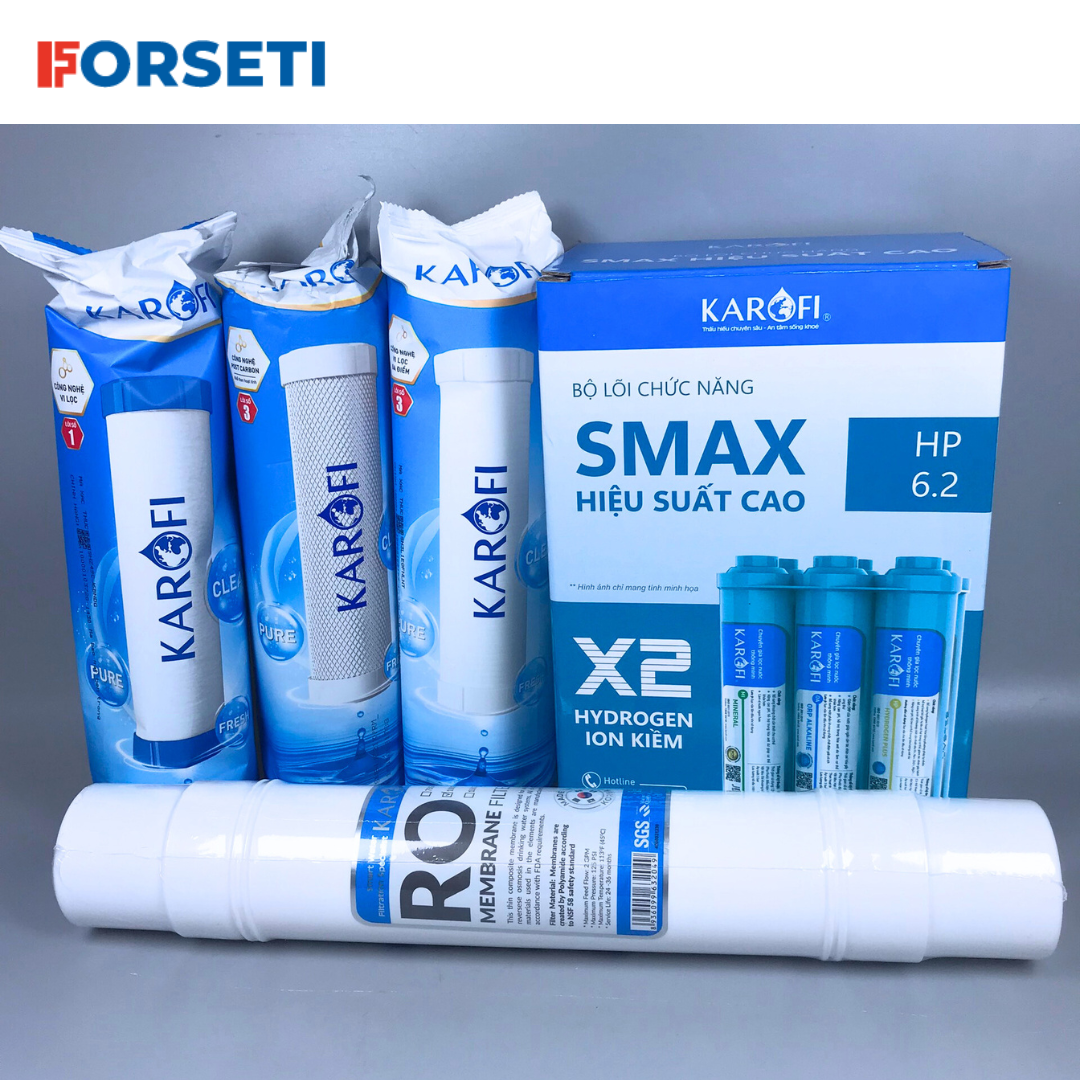 Mua tại TiktokMô Tả Sản Phẩm Combo Bộ 10 Cấp Lõi Lọc Đúc Nguyên Khối Karofi SMAX Hiệu Suất Cao HP 6.2 Hydrogen - Hàng Chính Hãng Thay thế cho tất cả các lõi lọc của máy lọc nước RO có trên thi thường. Có thể nâng cấp tất cả các loại máy lọc nước RO 6 cấp lọc, 7 cấp lọc, 8 cấp lọc, 9 cấp lọc lên thành máy 10 cấp lọc Hydrogen nhờ Combo Bộ 10 Cấp Lõi Lọc Đúc Nguyên Khối Karofi SMAX Hiệu Suất Cao HP 6.2 Hydrogen - Hàng Chính Hãng này. Thao tác thay thế các lõi lọc vô cùng đơn giản nhờ bộ lõi chức năng đúc nguyên khối (có đầy đủ phụ kiện dây đi kèm theo bộ combo này gồm: 1 T chia dây nối nhanh 6ly và 2m dây nối với lõi chức năng) – Lõi 1 PP Sediment 5microm filter :
