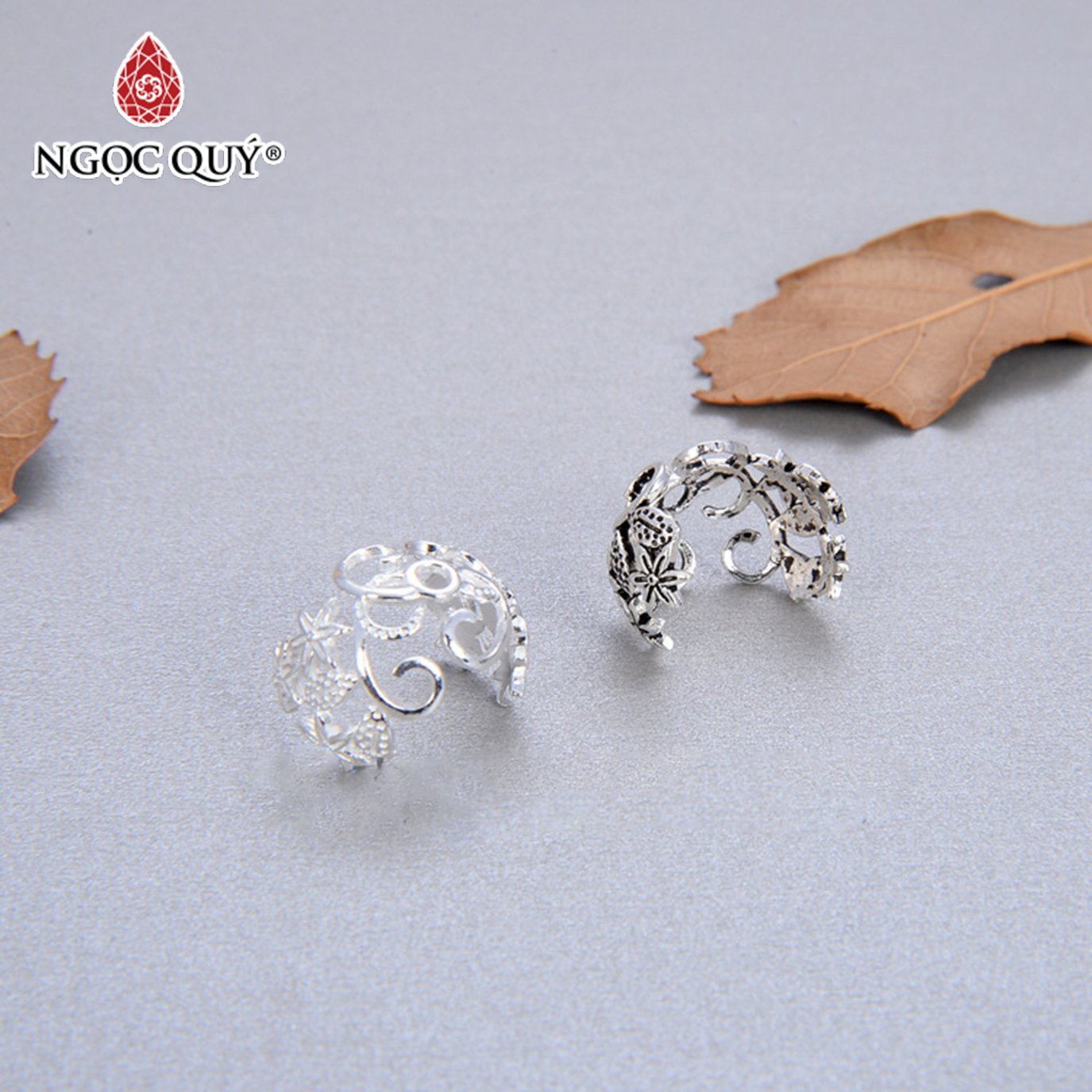 CHARM BẠC ÔM HẠT HỌA TIẾT HOA VĂN