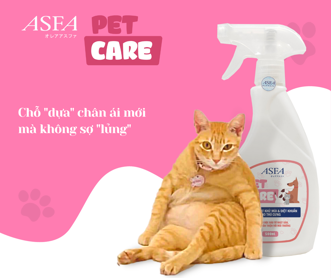 ASFA Pet Care loại bỏ các mùi hôi do lông, phân, nước tiểu của chó, mèo hoặc các loại vật nuôi khác; đánh bay mùi ẩm mốc, hôi tanh của vật dụng và chuồng trại.