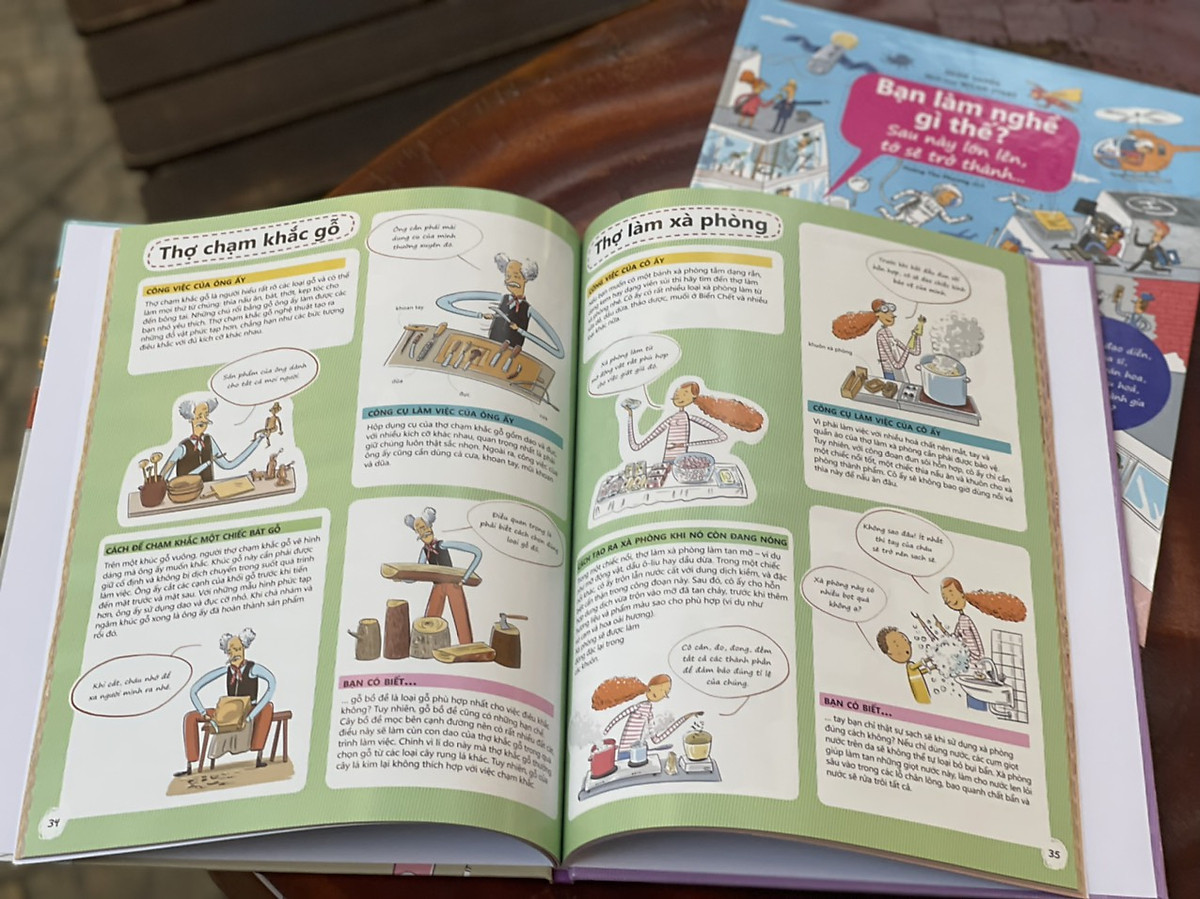 Sách được thiết kế khổ lớn và rất tỉ mỉ, công phu. Những nét vẽ minh hoạ sinh động của hoạ sĩ Milan Starý cùng ngôn ngữ dịch dí dỏm, cuốn hút của dịch giả Hoàng Thu Phương sẽ giúp hành trình khám phá thế giới nghề nghiệp của các độc giả nhí thêm phần thú vị. Phiên bản tiếng Việt Bạn làm nghề gì thế? (Sau này lớn lên, tớ sẽ trở thành…) và Bạn làm nghề gì thế? (Thế giới nghề thủ công) hứa hẹn sẽ là một lựa chọn phù hợp với các bạn nhỏ trên con đường đi tìm ước mơ.