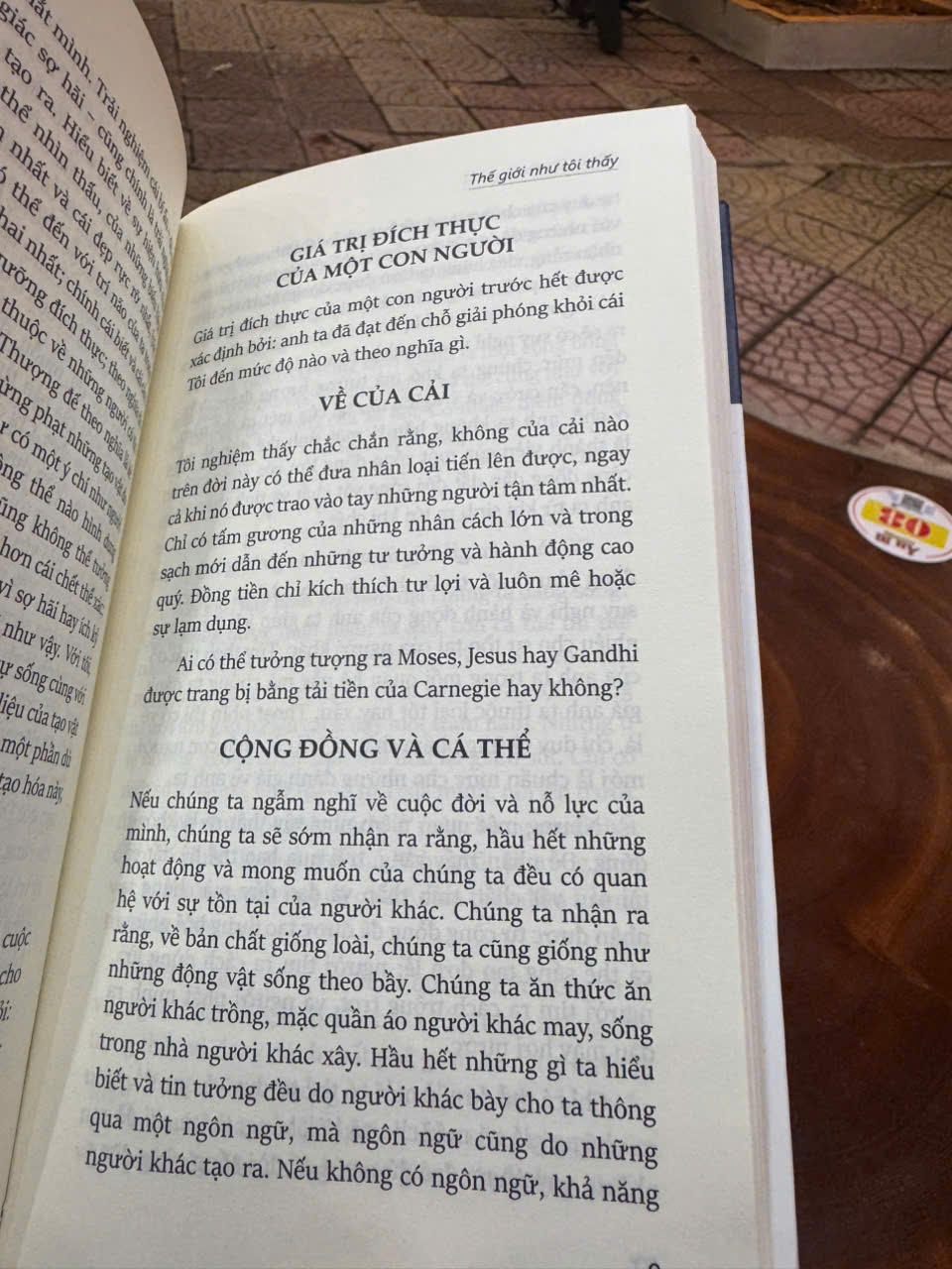 "Thế giới như tôi thấy" tập trung vào những suy tư cá nhân của Einstein về cuộc sống, vai trò của tôn giáo, ý nghĩa của tự do cá nhân và tầm quan trọng của đạo đức trong xã hội. Đó là góc nhìn hồn hậu, đầy trăn trở của một con người bình thường trước những vấn đề lớn.