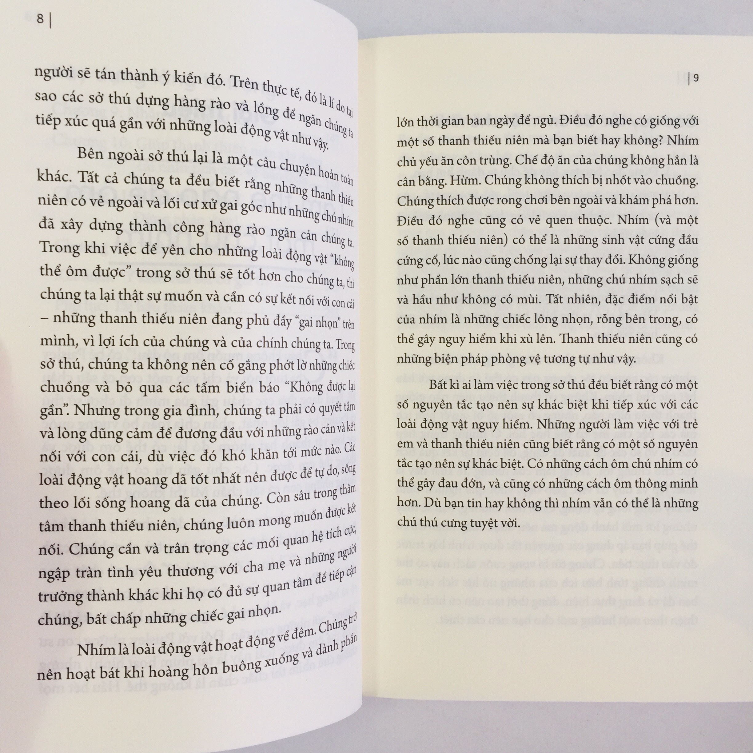 Chưa Một Lần Đau Sao Là Tuổi Trẻ Chỉ cần bên cạnh bạn có những đôi tay sẵn sàng chìa ra nâng đỡ, có những bờ vai cho bạn tựa vào, có những cái ôm động viên khích lệ, vậy là quá trình trưởng thành của bạn vĩnh viễn không hoài phí mà còn nhận được nhiều hơn – Từ Lỗi Tuyên Tuổi trẻ là giai đoạn đẹp nhất của cuộc đời. Tuổi trẻ là chuyến hành trình một chiều, và những nỗi ưu phiền, rắc rối xoay quanh vấn đề học tập, tình bạn, tình yêu các mối quan hệ trong gia đình, nhà trường và ngoài xã hội luôn là một thế giới đầy thử thách  và thú vị. Chúng ta đều là những chú chim nhỏ háo háo bay ra ngoài kia khám phá thế giới, cho dù có bao nhiêu cay đắng, bao nhiêu vấp ngã, thì quá trình này vẫn luôn đầy ý nghĩa và đây chắc chắn sẽ là giai đoạn khó quên trong đời bạn. Hãy mang theo cuốn sách này và lòng can đảm tiến về phía trước để có được những trải nghiệm cảm nhận và tìm ra lời giải cho những nỗi đau đớn mà bạn đang ôm giữ trong lòng. Làm Thế Nào Để Ôm Một Chú Nhím - 12 Bí Quyết Kết Nối Với Trẻ Vị Thành Niên Ở sở thú, có những loài vật ôm được và có những loài “không thể ôm được”. Nhím có thể được xếp vào nhóm thứ hai bởi lớp lông nhọn hoắt được chúng dựng lên mỗi khi đánh hơi thấy nguy hiểm. Thanh thiếu niên cũng như vậy. Chúng gai góc (hoặc thích tỏ ra gai góc). Chúng có xu hướng dựng lên một hàng rào vô hình ngăn cản ta tiếp cận, giống như bộ lông nhọn hoắt của những chú nhím vậy. Tuy nhiên, có những nguyên tắc mà khi được tuân thủ sẽ giúp ta dễ dàng ôm được một chú nhím vào lòng. Và cũng có những bí quyết  sẽ giúp chúng ta vượt qua lớp hàng rào phủ đầy gai nhọn, phá vỡ bức tường ngăn cách do thanh thiếu niên dựng lên để có thể tạo nên sự khác biệt. Thẳm sâu trong thâm tâm, thanh thiếu niên rất mong bản thân được chấp nhận, được cần đến và được yêu thương. Việc ôm một chú nhím là một thách thức độc đáo, và việc xây dựng các mối quan hệ tích cực với thanh thiếu niên là việc vô cùng thiết yếu, sẽ làm phong phú cũng như biến đổi cuộc sống của chúng ta mãi mãi.