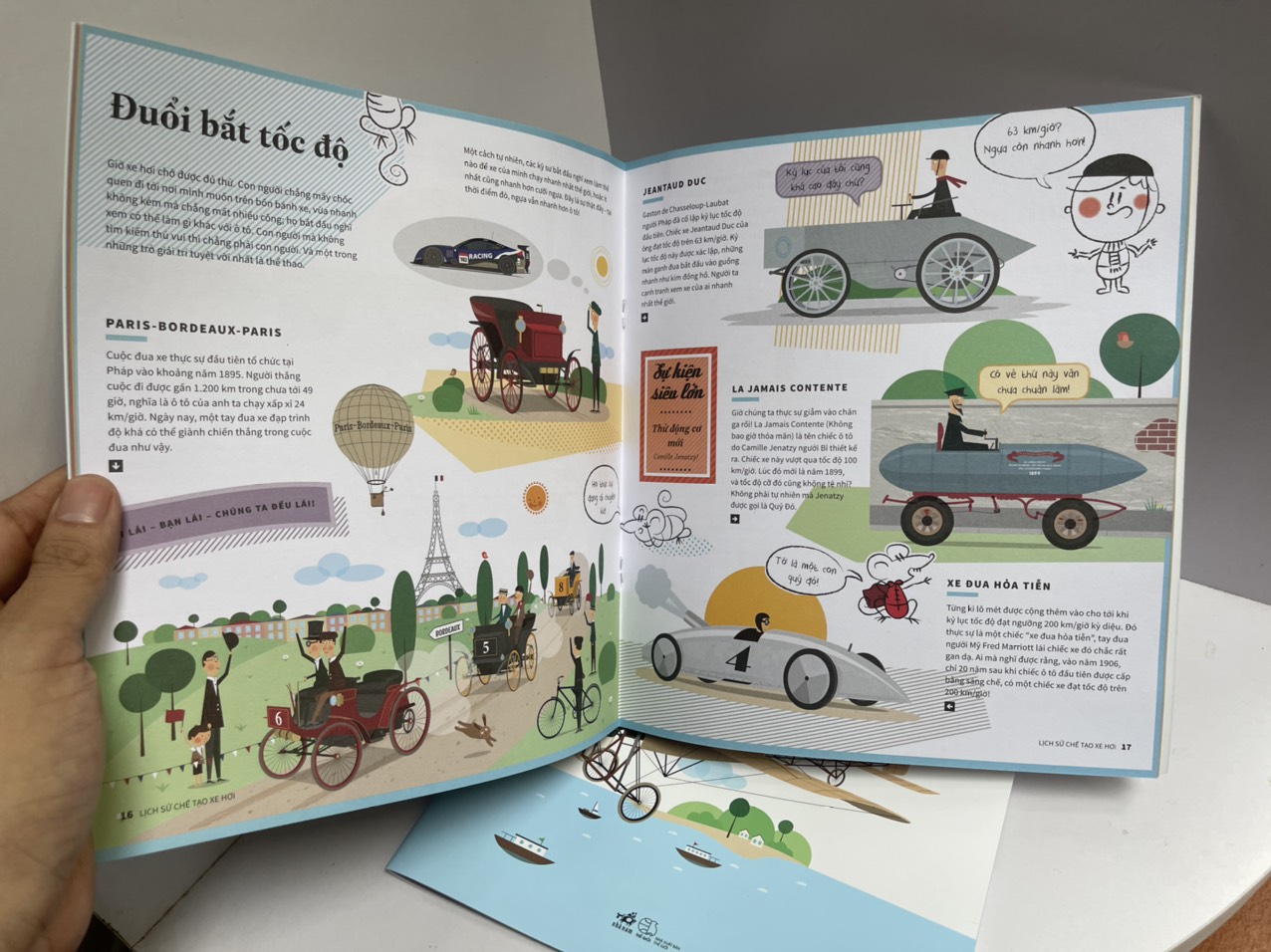 Hơn 5.000 năm trước loài người phát minh ra bàn xoay gốm; phát minh tưởng như không mấy liên quan này đánh dấu một điều khiến cho trái tim loài người đập nhanh hơn đôi chút: chiếc xe kéo đầu tiên, động cơ hơi nước đánh dấu sự ra đời của xe hơi, chiếc xe với động cơ đốt trong, rồi đến mẫu xe hiện đại của điệp viên James Bond và Người Dơi. Con người chưa bao giờ ngừng nghỉ trên chặng đường chinh phục tốc độ!Tất cả đang chờ bạn đọc 8-15 tuổi trong cuốn sách này, với ngập tràn hình minh họa độc đáo và đậm chất cổ điển.
