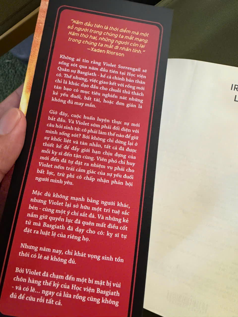 Mọi thứ bắt đầu với Cánh Tư, nơi chúng ta gặp gỡ Violet Sorrengail – một cô gái nhỏ bé, yếu đuối, nhưng lại bị ném vào học viện kỵ sĩ rồng Basgiath khắc nghiệt. Thay vì sức mạnh cơ bắp, Violet phải dựa vào trí tuệ và lòng dũng cảm để sống sót giữa muôn vàn âm mưu, phản bội và cái chết rình rập.