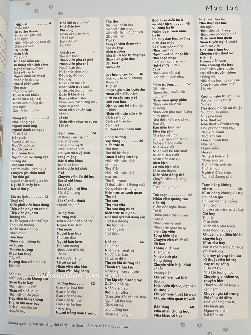 Bộ sách hướng nghiệp dành cho thiếu nhi của tác giả Silvie Sanža gồm hai cuốn: Bạn làm nghề gì thế? (Sau này lớn lên, tớ sẽ trở thành…) và Bạn làm nghề gì thế? (Thế giới nghề thủ công)